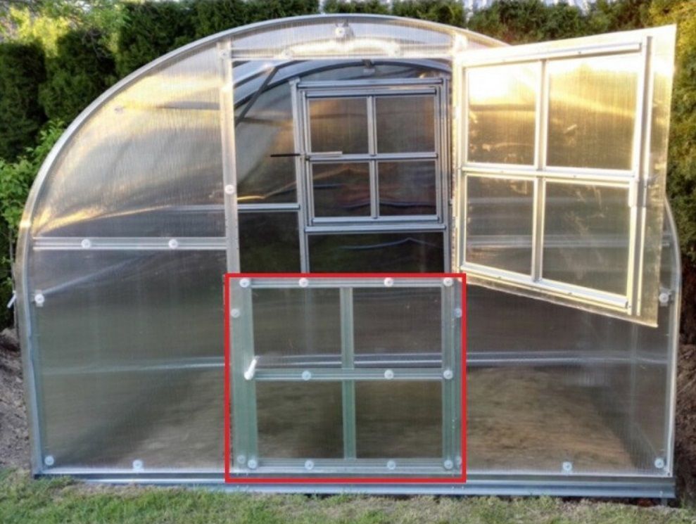 Kasvuhoone lisauks kasvuhoone tagumisel küljel tuulutusakna alla.