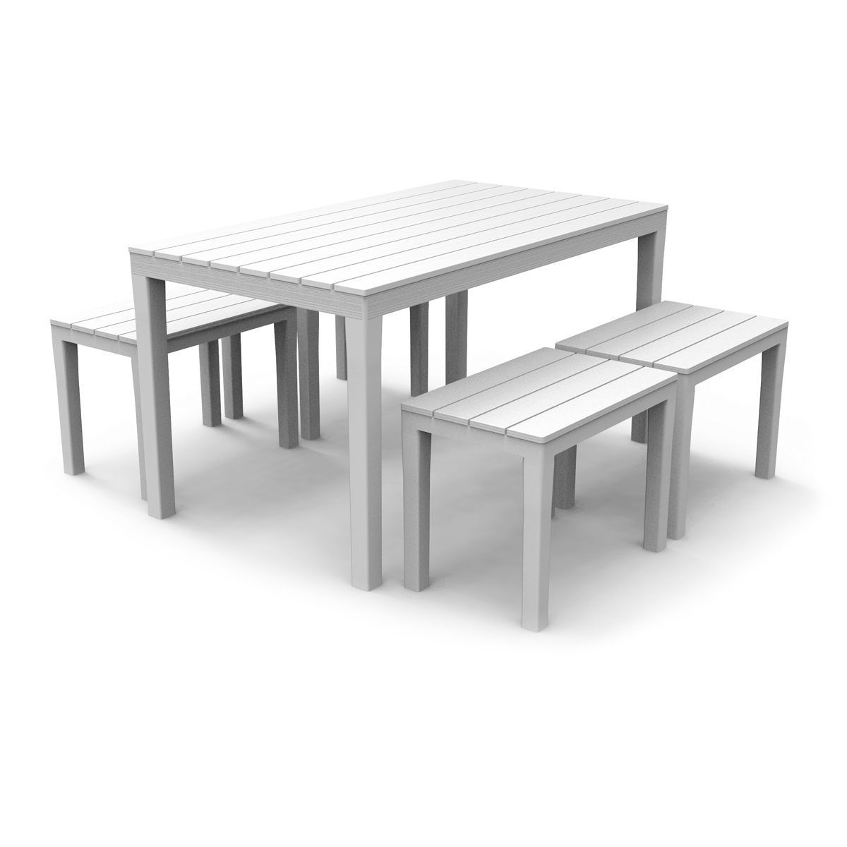 Progarden aiamööblikomplekt Samoa. Komplektis on laud Sumatra 138 x 78 x 72 cm ja pink Timor 60 x 38,5 x 45 cm. Komplekti värvus on valge.