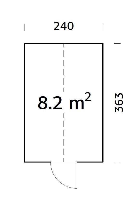 Halliks süvaimmutatud puitosadega klaasmaja. Mõõtmed on 363 x 240 x 283 cm.