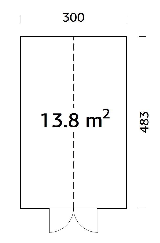 Halliks süvaimmutatud puitosadega klaasmaja. Mõõtmed on 483 x 300 x 288 cm.