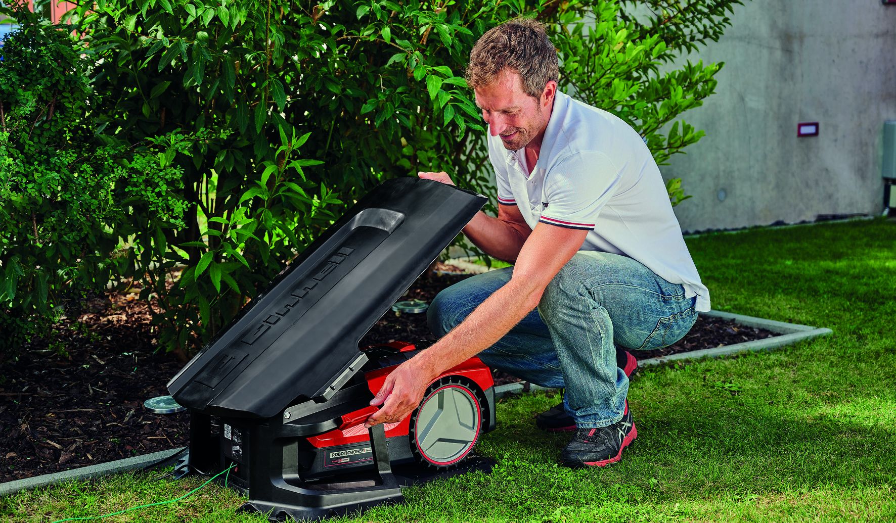Einhell GC-RM 500 robotniidukile ja kõigile Freelexo seeria robotniidukitele on sobiv "garaaž" ideaalne täiendus: see pakub kaitset igasuguste sademete, lõõskava päikese ja märja eest. See on loodud võimaldama head õhuringlust ja vihmavee äravoolu, nii et robotniiduk ei seisaks garaažis "märgade jalgadega". Väikese aiaabilise varjupaik pikendab selle kasutusiga, sest see vähendab oluliselt välismõjusid. Robotniiduki garaažil on hingedega kate, mis tagab hõlpsa juurdepääsu. Paigaldamine on väga lihtne: Toode tarnitakse koos kaheksa kinnituskruviga.