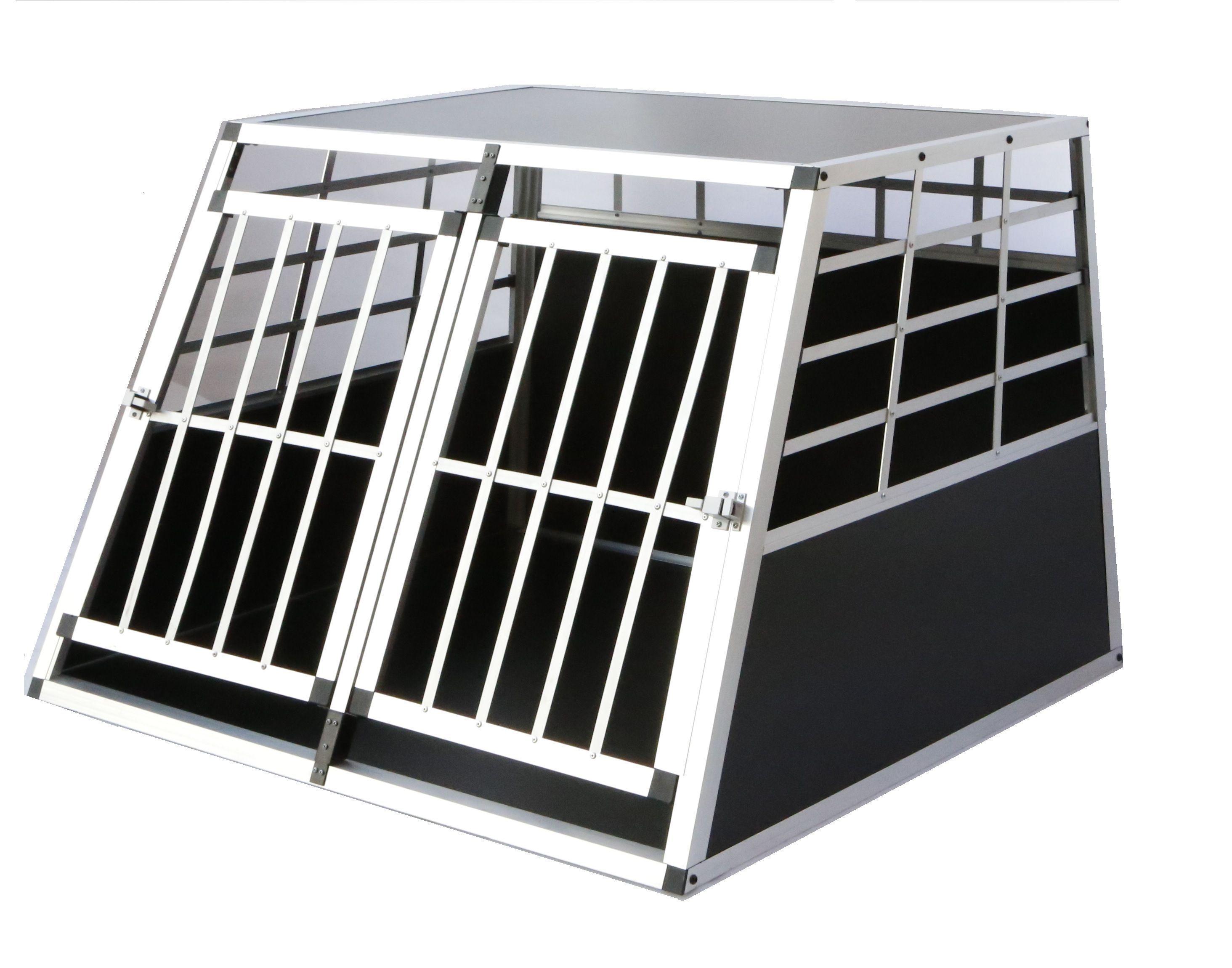 Kaitse oma lemmiklooma kõikidel autosõitudel! Alumiiniumist koerapuur on vastupidav ja kerge ning tänu võrele tagab hapniku ringluse. Puuri mõõtmed on 97 x 90 x 69 cm (P x L x K). Puuril on kaks ust + teisaldatav vahesein, mis võimaldab ka transportida kahete koera. Materjal on alumiinium + MDF, kaal 22 kg, kalded: 75°/75°.