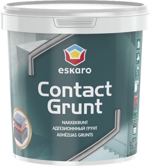 Eskaro Contact Grunt - nakkekrunt sise- ja välistöödeks. Kasutatakse läikivatele, mitteimavatele pindadele (betoonlaed, -seinad, põrandad jm.) nakkuva kihi loomiseks enne krohvimist või pahteldamist.