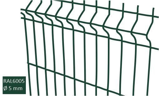 Aiapaneel 3D 5 mm RAL6005 on horisontaalsed ja vertikaalsed traadid omavahel kokku keevitatud. Tugevduse lisamiseks on sisse pressitud V tugevdused. Paneeli ülemisest servast on vertikaalsed traadid 25 mm üle horisontaalse traadi, muutes üleronimise raskeks nii inimestele kui loomadele.