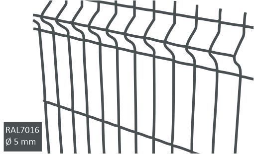 Aiapaneel 3D 5 mm RAL7016 on horisontaalsed ja vertikaalsed traadid omavahel kokku keevitatud. Tugevduse lisamiseks on sisse pressitud V tugevdused. Paneeli ülemisest servast on vertikaalsed traadid 25 mm üle horisontaalse traadi, muutes üleronimise raskeks nii inimestele kui loomadele.