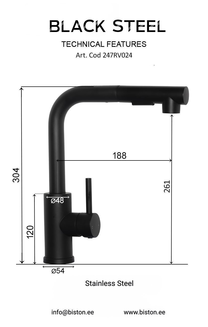 KÖÖGISEGISTI AQUALINE STEEL L KÄSIDUŠIGA, MUST