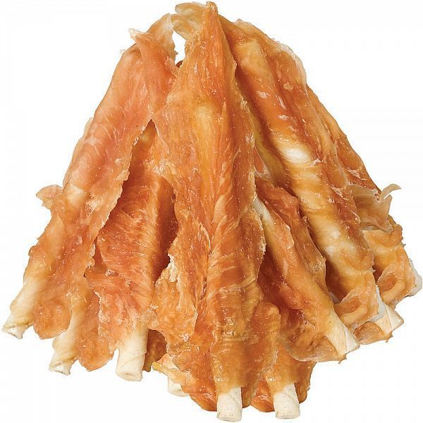 Toornahast pulk on kaetud kanarinnafilee tükiga. Laske koeral värskelt küpsetatud kanalihaga kaetud maiust närides mõnusalt aega veeta.