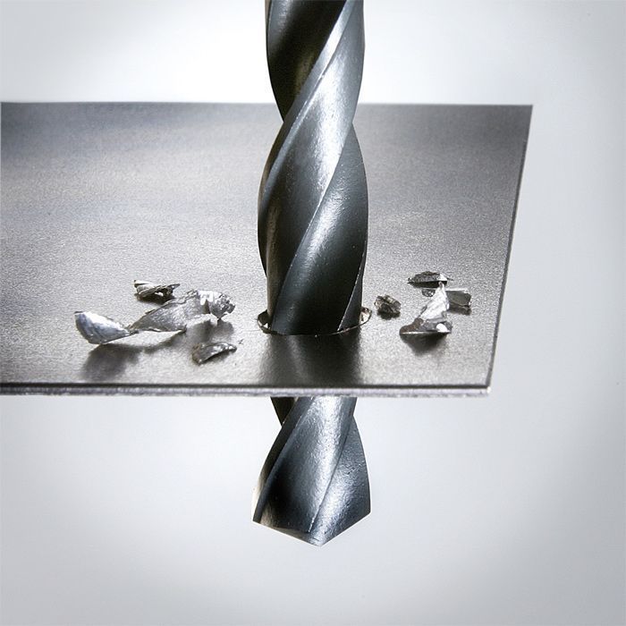 DIN 338, parempoolne lõige, tüüp N, rullsepistatud, sinimust värv, auruga karastatud, otsanurk 118 kraadi, näiteks legeeritud ja pehme terase, valandite, värviliste metallide, kõvade plastide jaoks.
