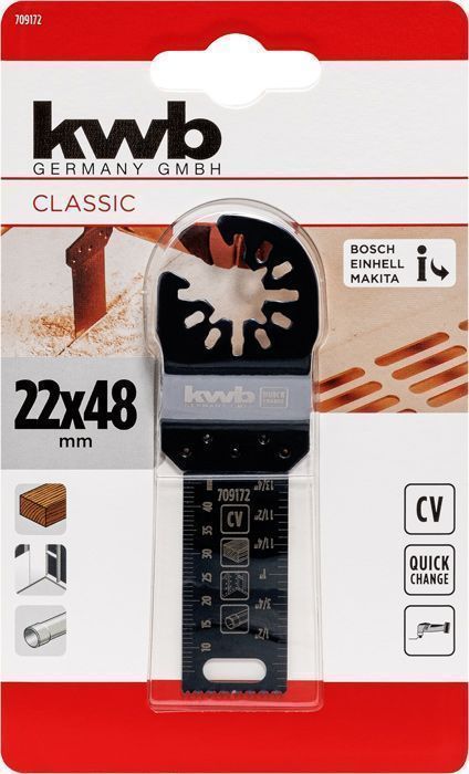 Patenteeritud sooned suurema ja kiirema tööjõudluse jaoks ja patenteeritud kiirvahetus kinnitus. Puhas lõikamine kõvas puidus, pehmes puidus, parketis, kipsplaadis, plastikus jne. Lihtne materjali sukeldumine igas punktis, paneelide, parketi, plasti lõikamiseks. nt probleemivabad sukelduslõiked täispuidust köögitööpindades ventilatsioonivõrede jaoks, kappides või kipsplaadis pistikupesade juurdepääsuks.