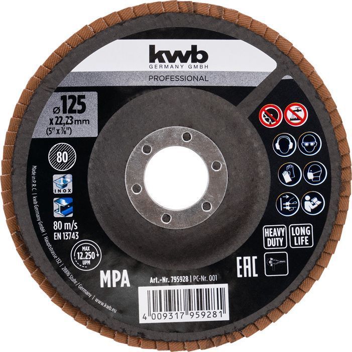 LAMELLKETAS KWB 125MM KERAAMILINE P80