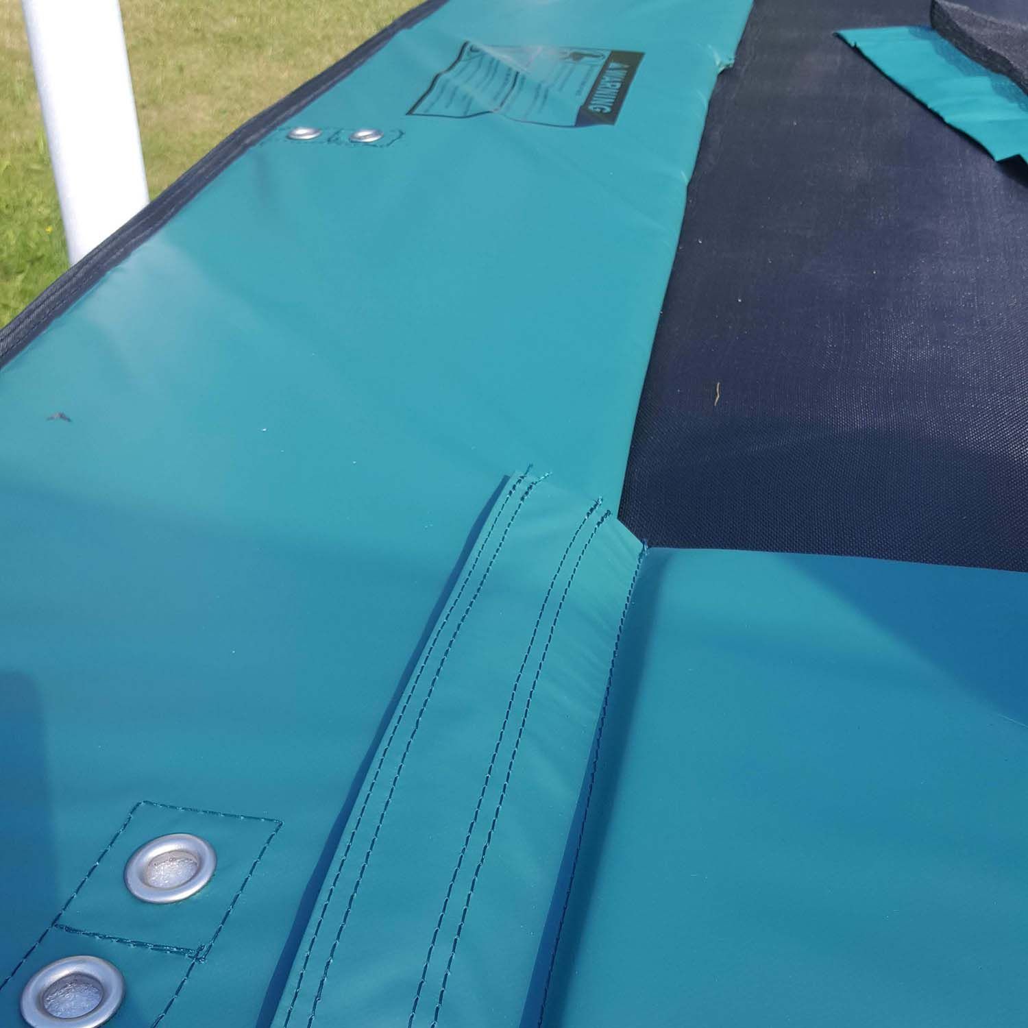 Batuut turvavõrguga 426x274cm, rohelise äärega. Batuut on tore võimalus värskes õhus aktiivseks ajaveetmiseks kogu perele! Batuudi kõrgus maast on 92cm. Elastne ja vastupidav hüppematt on valmistatud musta värvi polüpropeenist. Turvaääre pealmine kiht on valmistatud rohelisest PVC materjalist, alumine pool on polüetüleenkangas. Kahe kihi vahel on 15+6mm polüetüleenvahust pehmendus. Turvaääre laius on 36cm. Batuudi raam ja jalad on valmistatud galvaniseeritud terastorust. Ülemise ääre toru mõõt on D60x2,5mm, jalatorude mõõt on D42x2mm. Batuudil on 92 vedru - 210mm/D25x3,2mm. Turvavõrk on valmistatud musta värvi polüestervõrgust 90g/m². Sissepääsuava on tõmblukuga suletav. Tugipostid on valmistatud galvaniseeritud terastorust D38,1x1,1mm. Postide ümber on vahtplastist pehmendus. Võrgu üldkõrgus on 272cm, kõrgus batuudi äärest 180cm. Kaalupiirang 150kg. HOIUSTAMINE: batuudi eluea pikendamiseks soovitame see suvehooaja lõppedes lahti monteerida ja hoiustada kuivas, hea ventilatsiooniga ruumis. Puhastage ja kuivatage matt, turvavõrk ja turvaäär enne hoiule panekut.