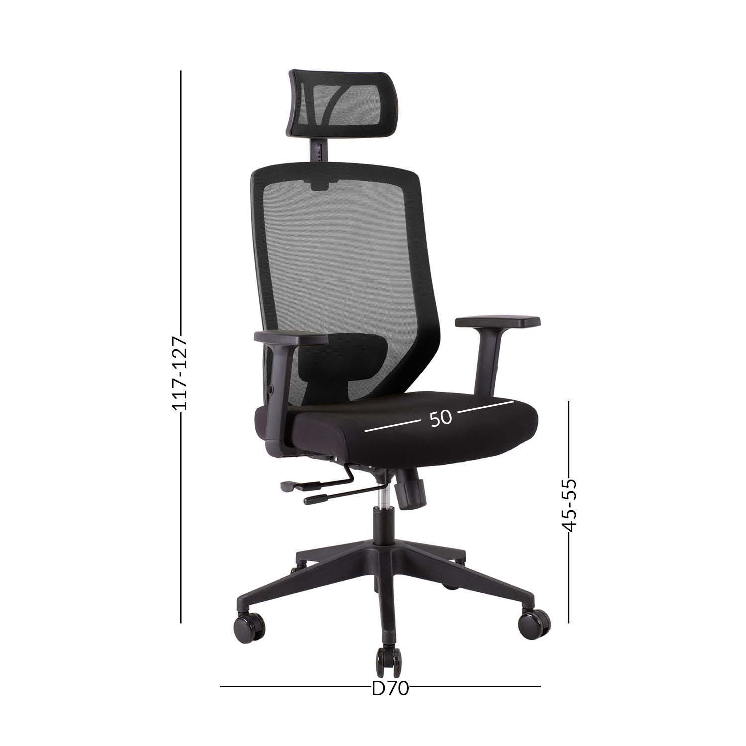 Töötool JOY must. Iste on kaetud polüesterkangaga. Selja- ja peatugi on kaetud polüestervõrkkangaga. Ergonoomilise disainiga seljatoeraam on valmistatud mustast plastikust. Toolil on multifunktsionaalne mehhanism, seljatoe kaldenurk on lukustatav kolmes positsioonis. Reguleeritav nimmetugi. Istme sügavus on reguleeritav 4,5cm ulatuses. Istme kõrgus on reguleeritav gaasamordi abil. Mustast plastikust käetoed on pehme polüuretaankattega. Käetugede ja peatoe kõrgus on reguleeritavad. 5-haruline jalarist on musta värvi plastikust, R34cm. Toolil on plastikrattad, 60mm. Tooli kõrgus on 115-125cm, istme laius 50cm, sügavus 50cm, istme kõrgus 46-56cm. Toote mõõdud on 64x64xH115-125cm. Tooli kaalupiirang on 120kg.