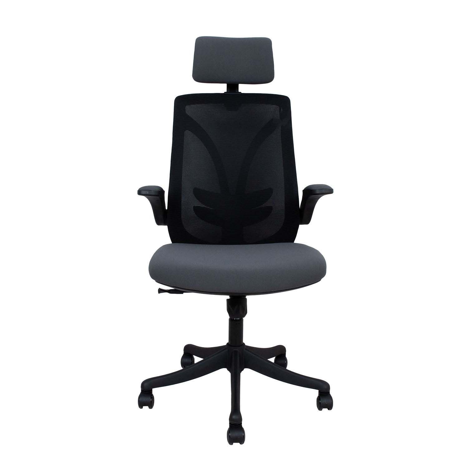 Töötool TANDY hall/must. Tooli polsterdatud iste ja peatugi on kaetud halli polüesterkangaga. Seljatugi on kaetud kihilise musta polüestervõrkkangaga, nimmetugi on fikseeritud. Toolil on lukustatav kiikemehhanism. Istme kõrgus on reguleeritav gaasamordi abil. Kerge polsterdatud kangaga kaetud käetoed on üles lükatavad. Peatoe kõrgus ja kaldenurk on reguleeritavad. 5-haruline jalarist on mustast plastikust, R33cm. Toolil on plastikrattad 50mm. Tooli üldmõõdud on 62,5x64xH116-126cm. Istme laius 53cm, istme sügavus 52cm, istme kõrgus 45-55cm.
