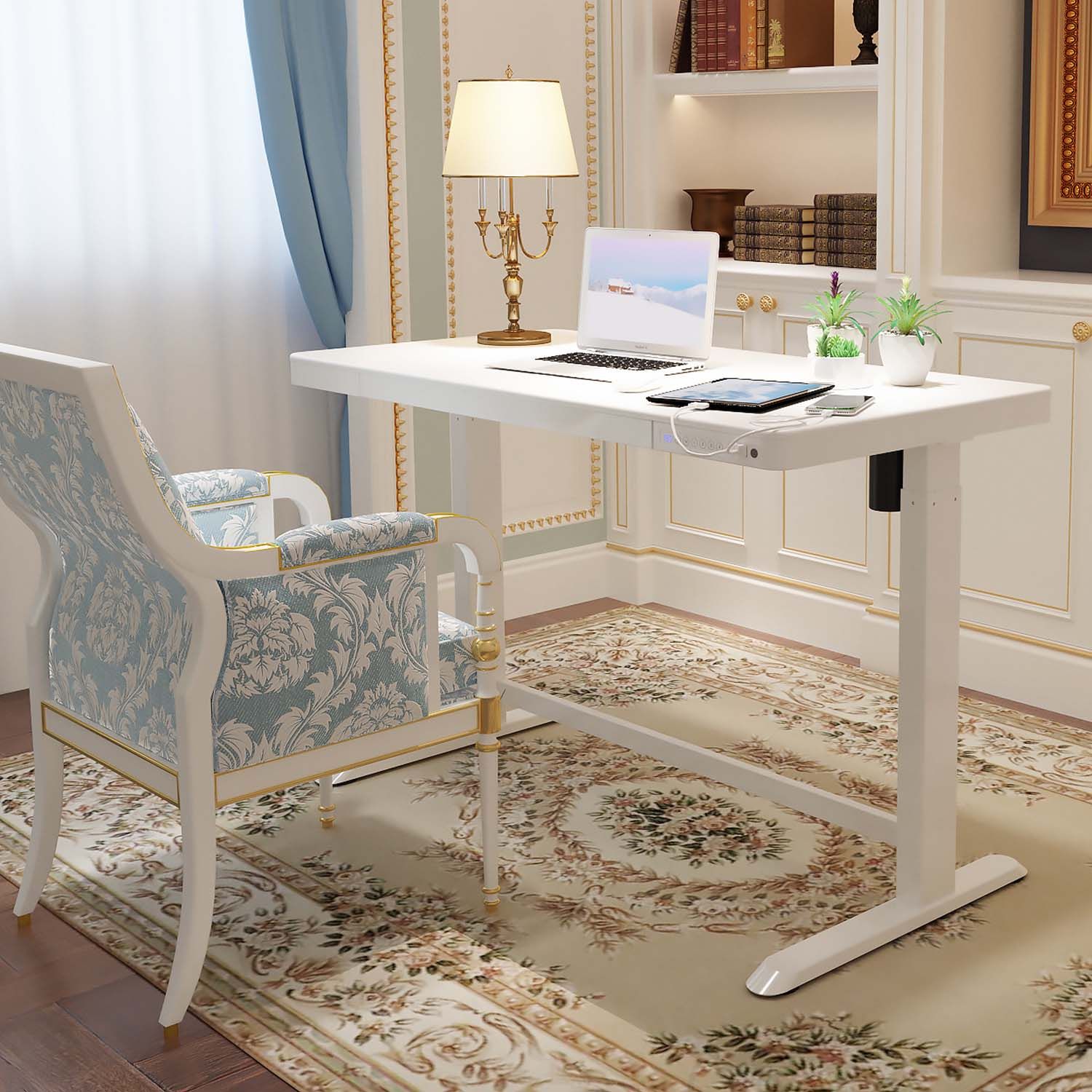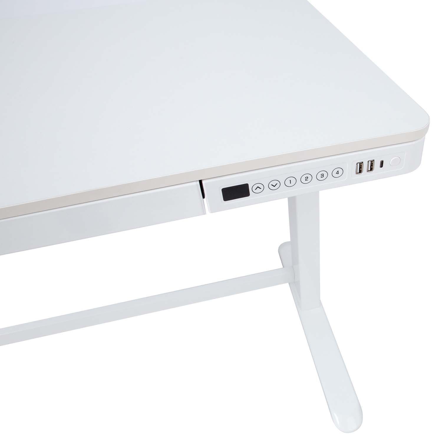 Töölaud ERGO 1-mootoriga 120x60xH72-121cm, valge. Reguleeritava kõrgusega töölaud on tark valik kogu perele! Muuda enda või oma laste töökeskkond mugavaks ja hoia tervist! Üks elektrimootor ja kahefaasiline tõstesüsteem tagavad kiire, sujuva ja vaikse (<50dB) liikumise. Tõstekiirus 25mm/s. Laua kõrgust on võimalik muuta vahemikus 72-121cm. Eelseadistatud juhtpaneeli mällu on salvestatud 4 positsiooni. Maksimaalne kandevõime täiskiirusel 50kg. Sisendpinge: 100V-240V. Laual on turvalukk, 3 USB laadimisporti ning mahukas sahtel. 120x60cm valge melamiinkattega lauaplaat. Topelt nelikanttorudest teraskonstruktsioon tagab lauajala stabiilsuse ka kõige kõrgemal positsioonil. Metallist osad on kaetud valge pulbervärviga. Laud on komplekteeritud ja pakitud nii, et selle paigaldamine on lihtne ja kiire ning tööriistu kasutada ei ole tarvis.
