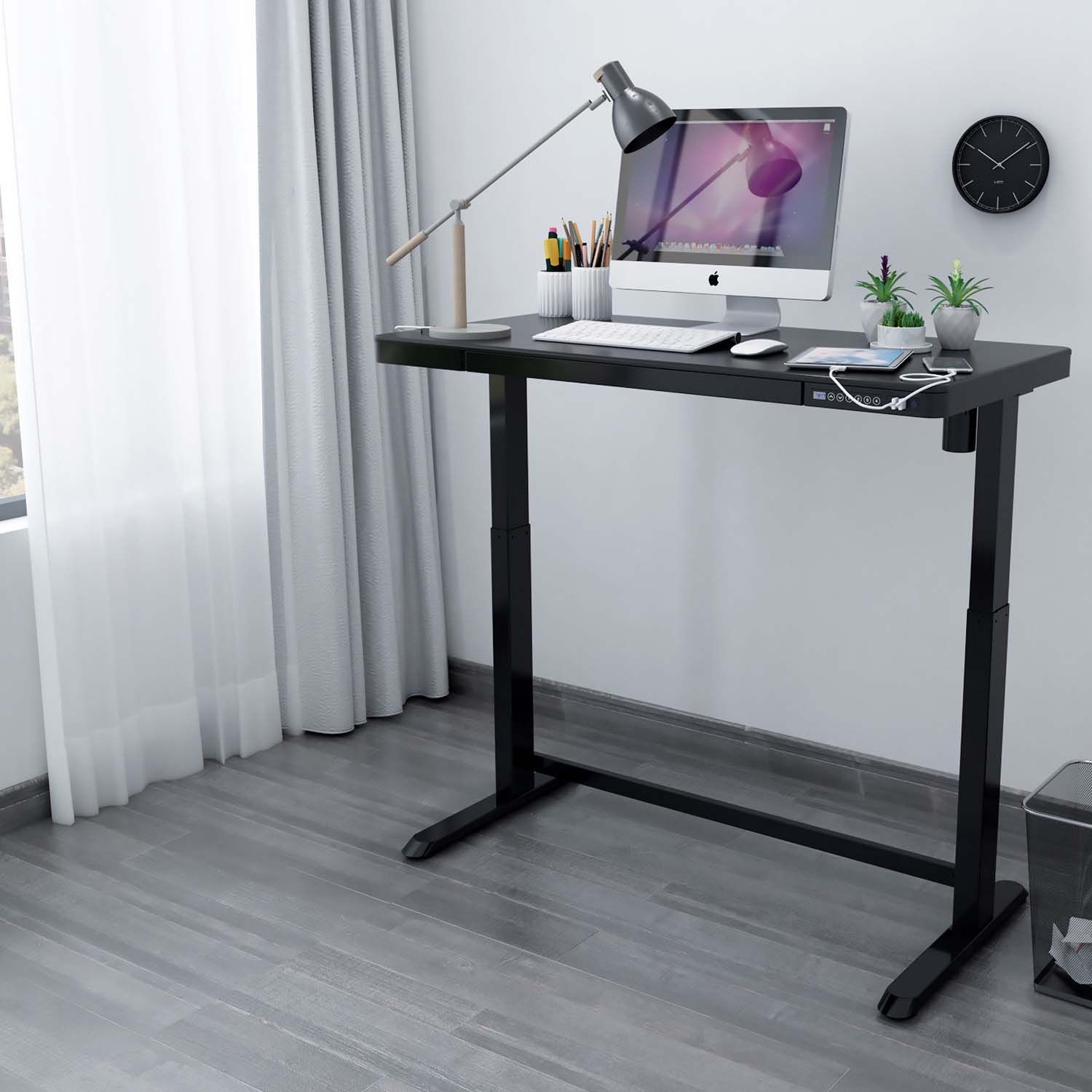 Töölaud ERGO 1-mootoriga 120x60cm, must. Reguleeritava kõrgusega töölaud on tark valik kogu perele! Muuda enda või oma laste töökeskkond mugavaks ja hoia tervist! Üks elektrimootor ja kahefaasiline tõstesüsteem tagavad kiire, sujuva ja vaikse (<50dB) liikumise. Tõstekiirus 25mm/s. Laua kõrgust on võimalik muuta vahemikus 72-121cm. Eelseadistatud juhtpaneeli mällu on salvestatud 4 positsiooni. Maksimaalne kandevõime täiskiirusel 50kg. Sisendpinge: 100V-240V. Laual on turvalukk, 3 USB laadimisporti ning mahukas sahtel. 120x60cm must melamiinkattega lauaplaat. Topelt nelikanttorudest teraskonstruktsioon tagab lauajala stabiilsuse ka kõige kõrgemal positsioonil. Metallist osad on kaetud musta pulbervärviga. Toote üldmõõdud on 120x60xH72-121cm.