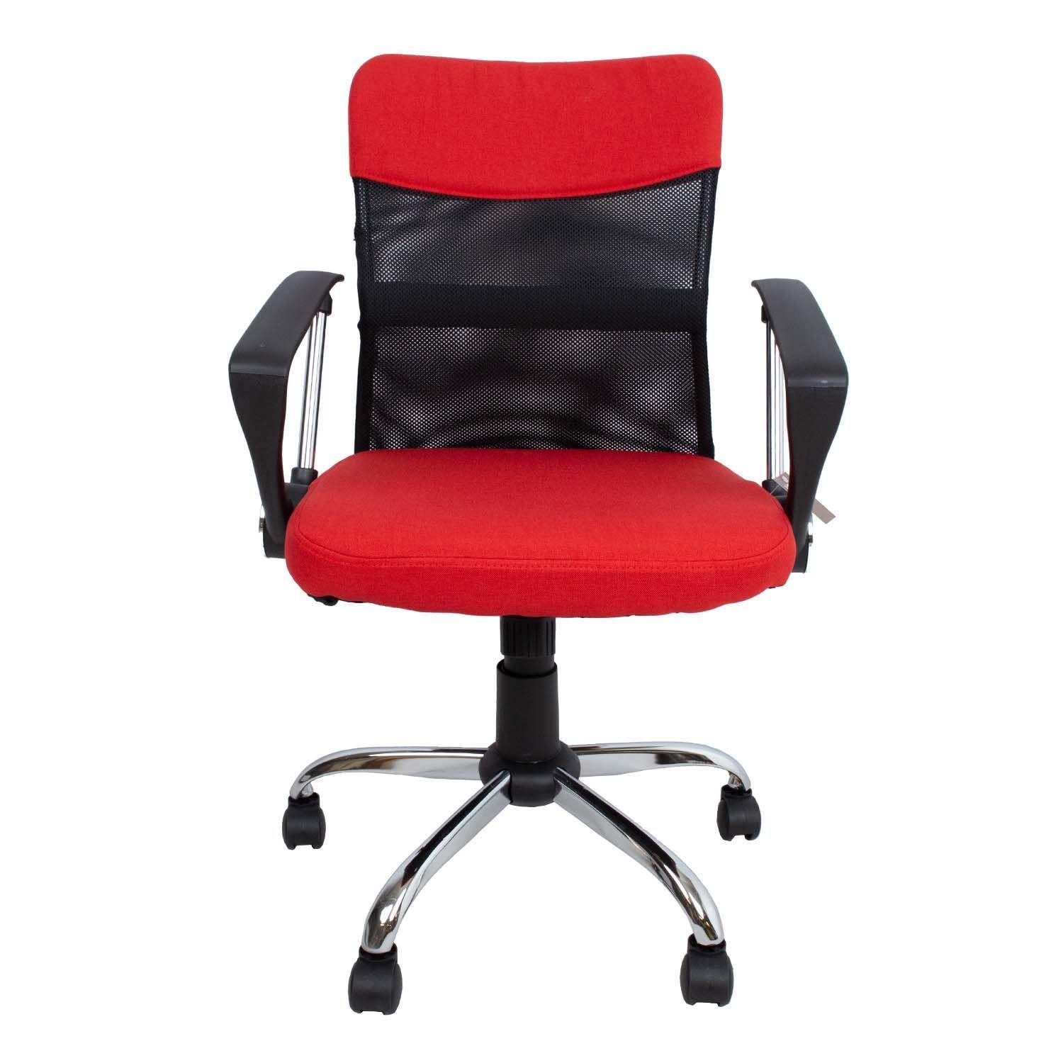 Töötool DARIUS punane/must. Kergelt polsterdatud tooli iste ja seljatoe ülemine osa on kaetud polüesterkangaga. Seljatoe keskmine osa on kaetud polüestervõrkkangaga. Toolil on kiikemehhanism, lukustatav ühes positsioonis. Istme kõrgus on reguleeritav gaasamordi abil. Käetoed on plastikust ja metallist. 5-haruline jalarist on metallist, R30cm. Toolil on plastikrattad, 50mm. Tooli kõrgus on 93-103cm, istme laius 47cm, istme sügavus 46cm, seljatoe laius 43,5cm, seljatoe kõrgus 58cm. Toote mõõdud on 57x57xH93-103cm. Tooli kaalupiirang on 100kg.