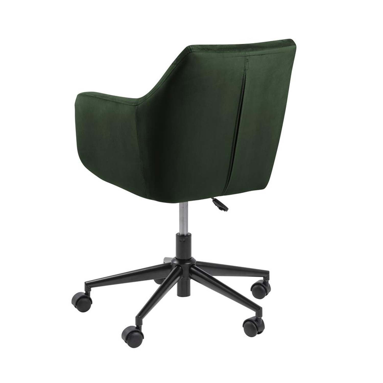 Töötool NORA metsaroheline. Iste ja seljatugi on kaetud metsarohelise kangaga. Jalarist on mustast metallist. Toolil on plastikrattad. Istumiskõrgus 44-54cm. Toote mõõdud on 58x58xH91cm.