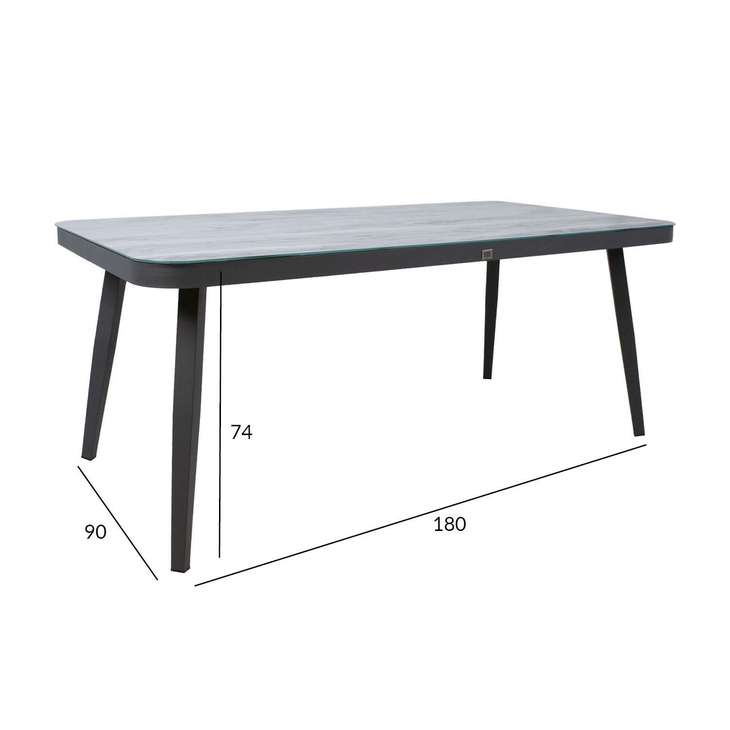 Laud MARIE 180x90xH74cm, hall. Lauaplaat: 5mm hall dekoorklaas. Jalad ja raam on valmistatud alumiiniumist ka viimistletud halli pulbervärviga. Toode on muutlikes ilmastikutingimustes hästi vastupidav ja lihtsalt hooldatav. HOIUSTAMINE: suvehooaja lõppedes soovitame aiamööblit hoiustada siseruumides. Puhastage ja kuivatage mööbel enne hoiule panekut. Kasutage hoiustamiseks kuiva ning hea ventilatsiooniga ruumi.