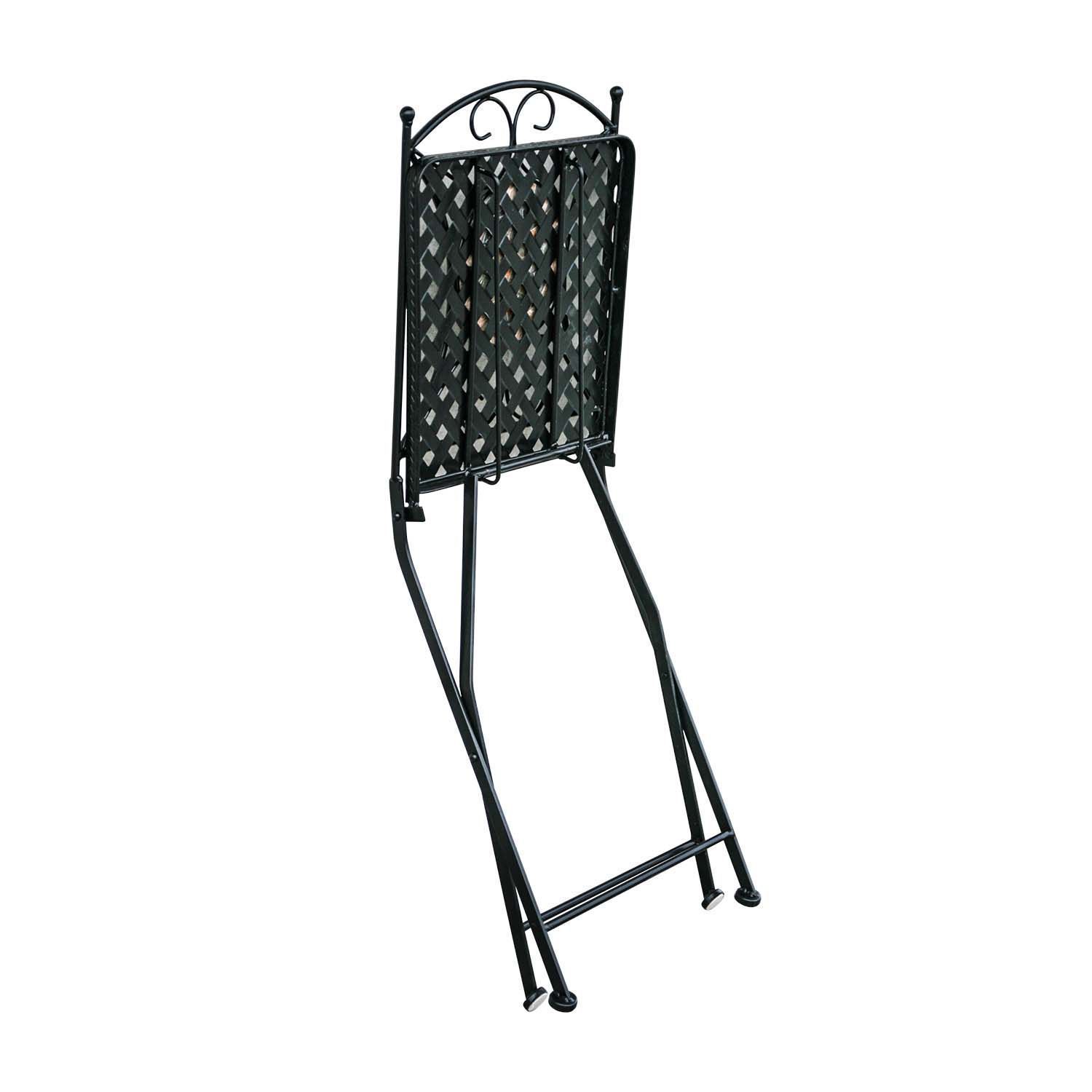 Tool MOSAIC kokkupandav. Tool on valmistatu metallist ja viimistletud musta pulbervärviga. Seljatuge kaunistab pruunides ja hallides toonides mosaiikplaat. Tool on kokkupandav. Tooli üldmõõdud on 39x53xH90cm. Istme laius 37,5cm, istme sügavus 38cm, istme kõrgus 46cm. Kaalupiirang 90kg. Tooli mõõdud kokkupanduna on 38x100x11cm.