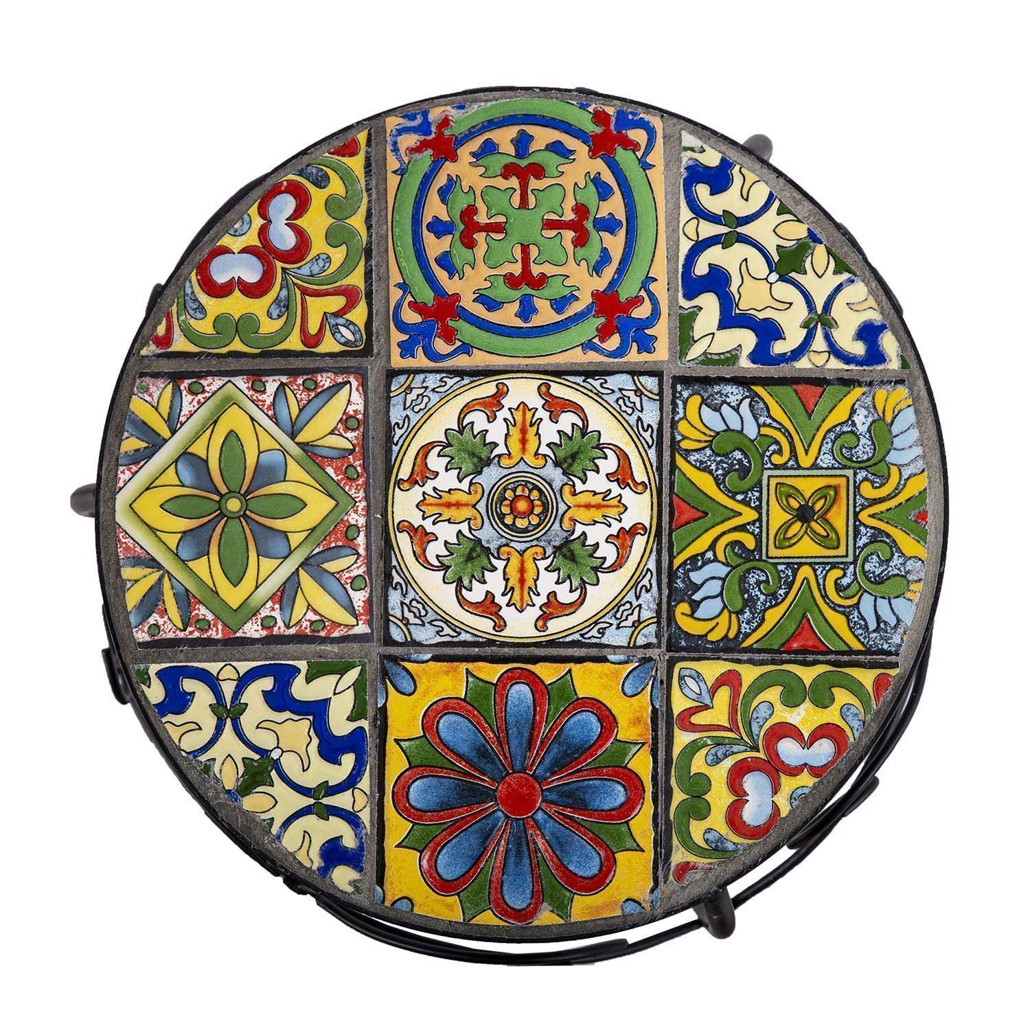 Lillepostament MOROCCO D25xH30cm. Pealmine mosaiikplaat on kaetud Morocco stiilis värviliste keraamiliste plaatidega. Metallist alusraam ja jalad on viimistletud musta pulbervärviga. Toode sobib kasutamiseks nii sise- kui väli tingimustes.
