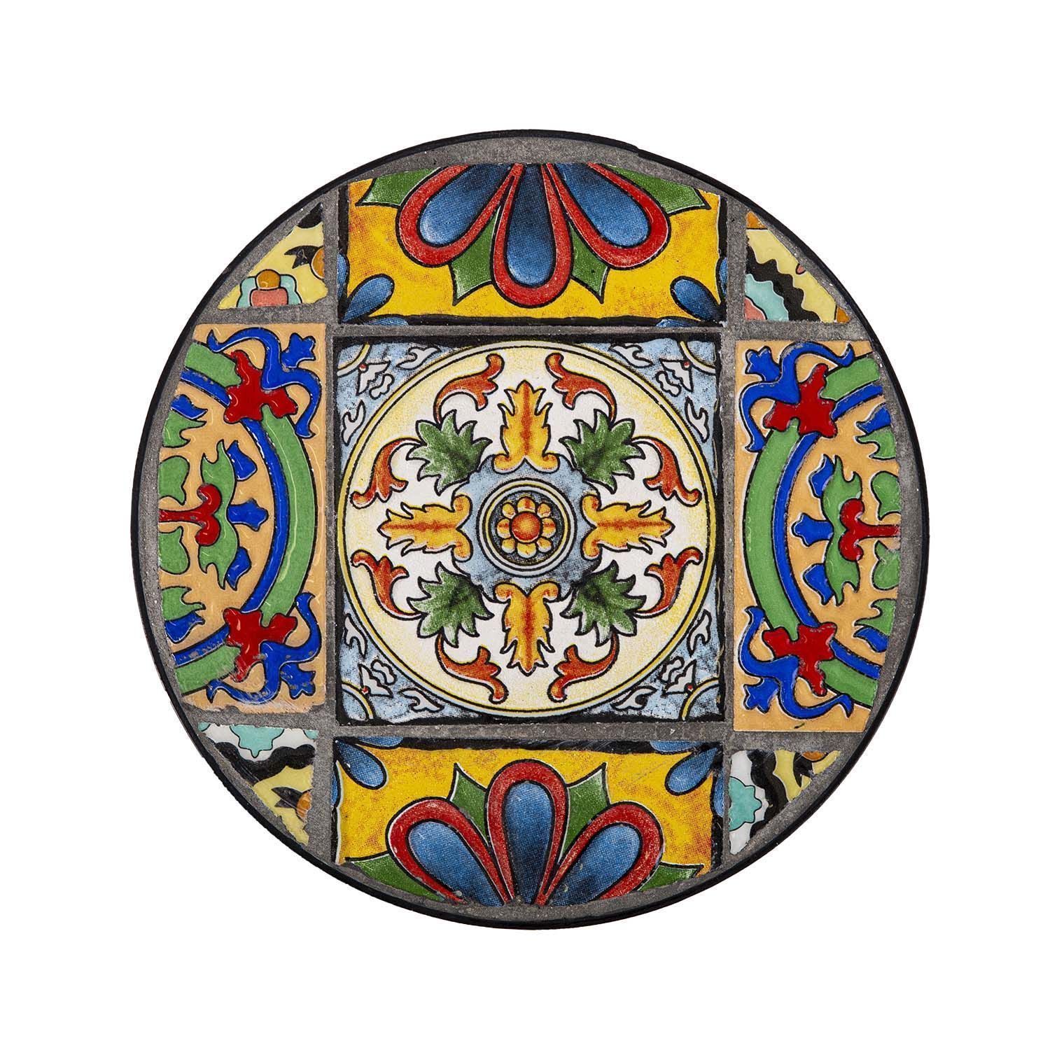 Lillepostament MOROCCO D25xH60cm. Pealmine mosaiikplaat on kaetud Morocco stiilis värviliste keraamiliste plaatidega. Metallist alusraam ja jalad on viimistletud musta pulbervärviga. Toode sobib kasutamiseks nii sise- kui väli tingimustes.