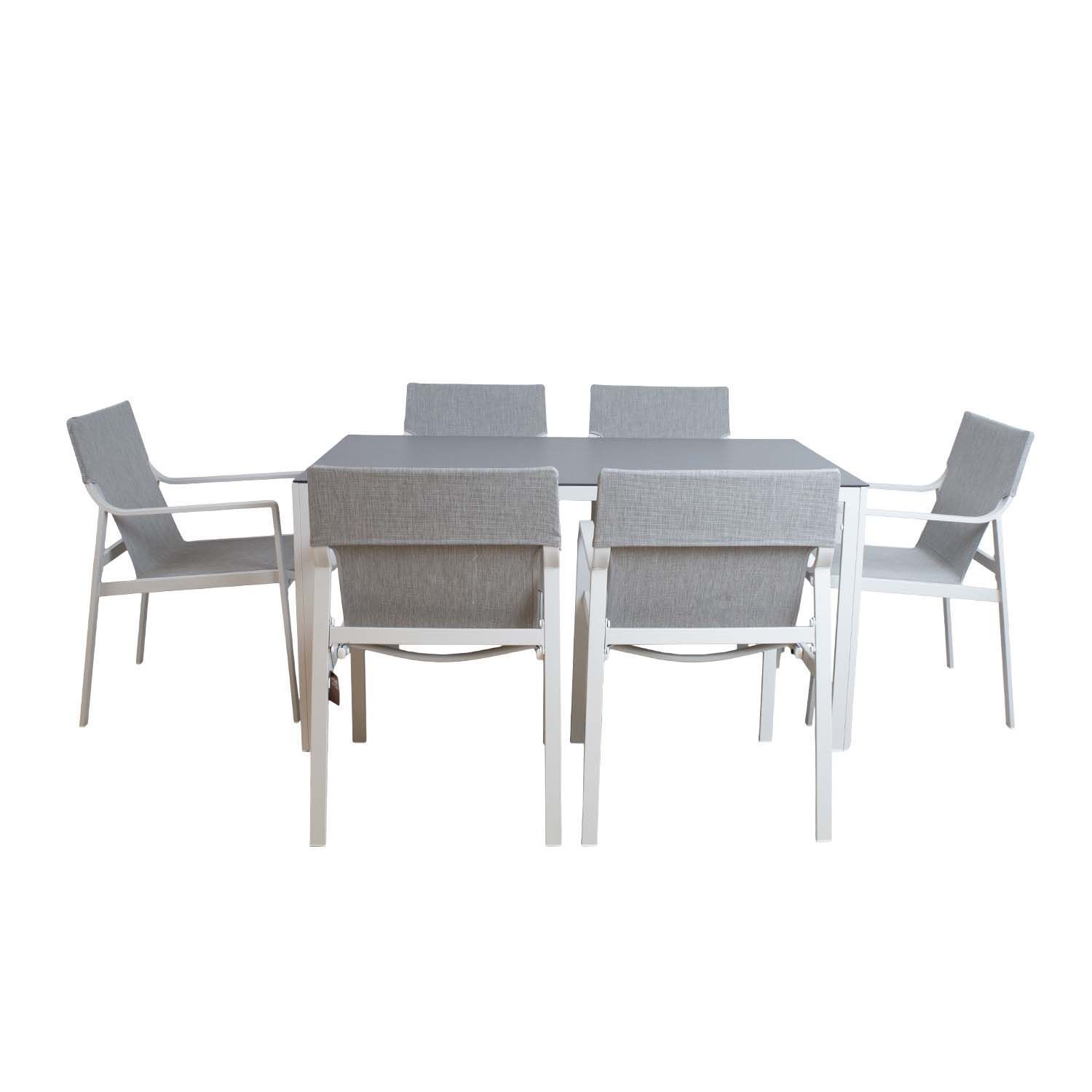 Aiamööblikomplekt OSMAN laud ja 6 tooli. Laua jalad ja raam on valmistatud alumiiniumist ja viimistletud pulbervärviga. Laual on hall 5mm karastatud klaasist plaat. Tooli raam on valmistatud terasest. Tooli textilene iste laseb hästi õhku läbi ja kuivab kiiresti. Laua mõõdud on 150x90xH74cm. Tooli mõõdud on 55x62xH86cm. Kaalupiirang 100kg. Toode on muutlikes ilmastikutingimustes hästi vastupidav ja lihtsalt hooldatav. HOIUSTAMINE: suvehooaja lõppedes soovitame aiamööblit hoiustada siseruumides. Puhastage ja kuivatage mööbel enne hoiule panekut. Kasutage hoiustamiseks kuiva ning hea ventilatsiooniga ruumi.