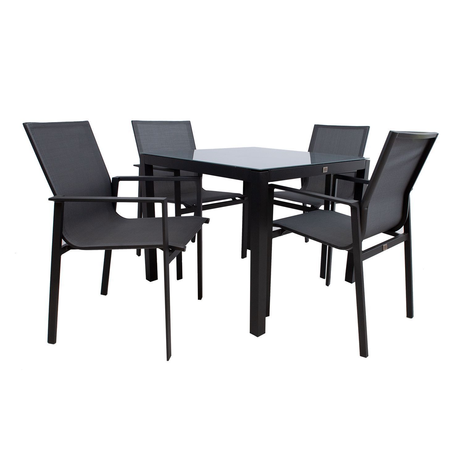 Aiamööblikomplekt AMALFI laud ja 4 tooli. Laua mõõdud on 90x90x74cm. Lauaplaat: 5mm karastatud klaas. Laua ja toolide jalad ja raamid on valmistatud alumiiniumist ja viimistletud halli pulbervärviga. Tooli textilene iste laseb hästi õhku läbi, kuivab kiiresti ja seda on lihtne puhastada. Toolid on virnastatavad ning nende hoiustamine on lihtne ja ruumi säästev. Tooli üldmõõdud on 58x65xH90cm. Kaalupiirang 120kg. HOIUSTAMINE: suvehooaja lõppedes soovitame aiamööblit hoiustada siseruumides. Puhastage ja kuivatage mööbel enne hoiule panekut. Kasutage hoiustamiseks kuiva ning hea ventilatsiooniga ruumi.