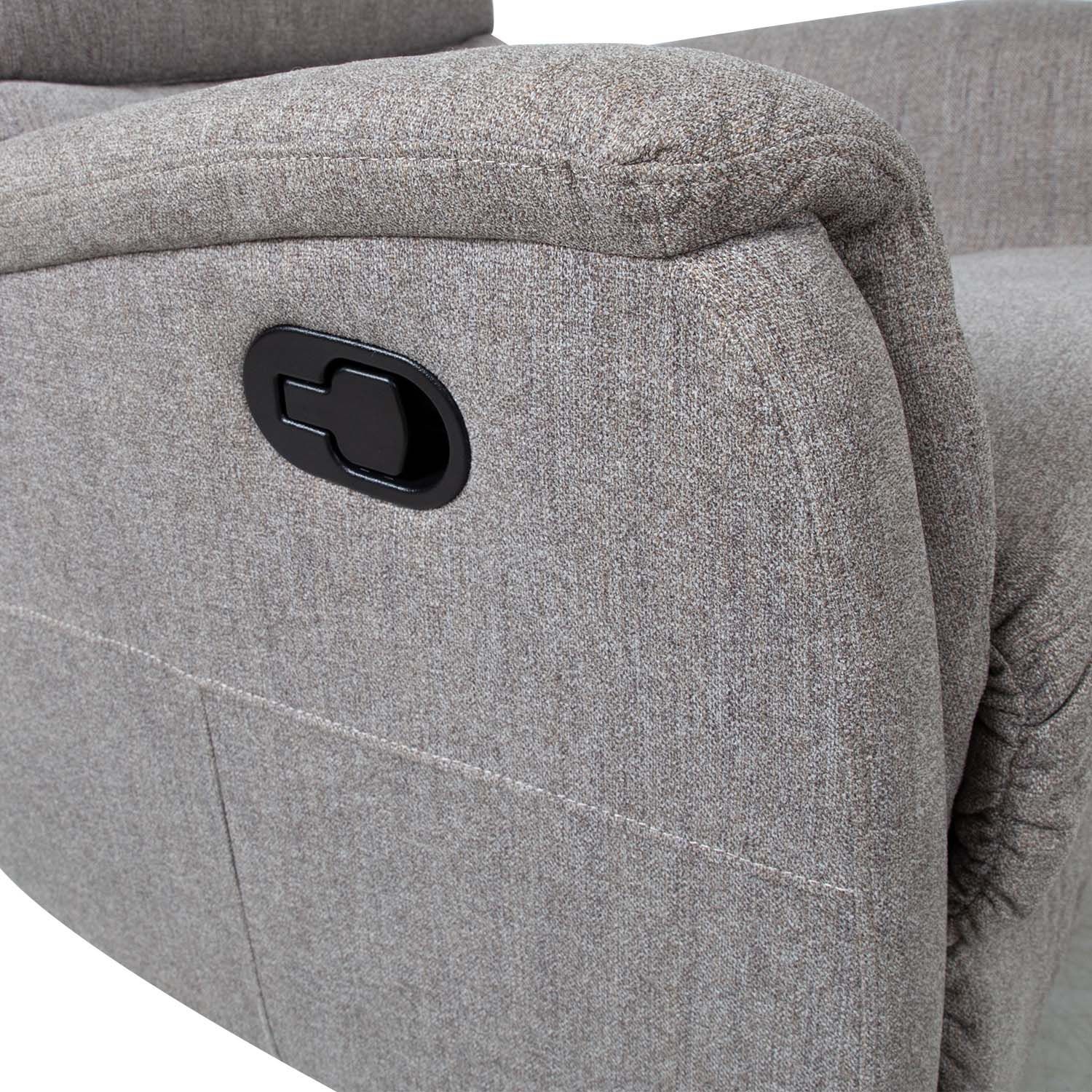 Tugitool BARCLAY manuaalne recliner, pöörlev ja kiikuv 79x86xH105cm, helehall. Recliner tüüpi tugitooli selja- ja jalatoe asendit on võimalik muuta manuaalse mehhanismi abil. Jalatuge üles tõstes liigub seljatugi sujuvalt kaasa lamavasse asendisse. Tugitoolil on pöörlev alus ja kiikemehhanism. Kattematerjal: 100% polüesterkangas. Karkass: puit, metall. Polsterdus: polüuretaanvaht. Istme laius 50cm, istme sügavus 50cm, istme kõrgus 49cm. Seljatoe kõrgus 69cm, käetoe kõrgus 63cm.