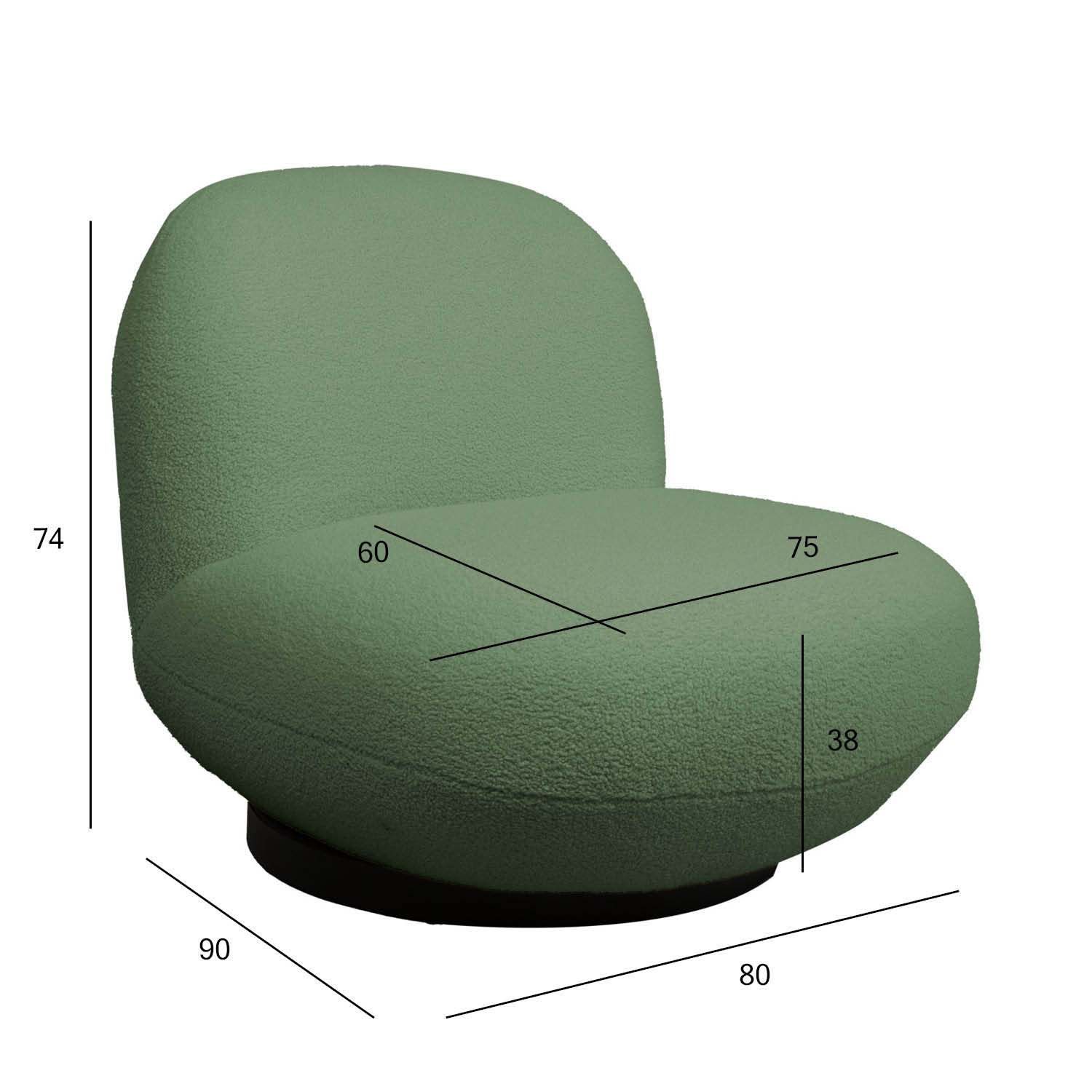 Tugitool PAMELA roheline. Ümar ja pehme, karvase kangaga kaetud 360 °pöörlev tugitool on pilkupüüdev sisustuselement, mida on lihtne sobitada erineva stiili või otstarbega ruumi. Kattematerjal: 100% polüesterkangas. Tooli karkass on valmistatud puidust ja vineerist. Istme sees on pocket vedruplokk. Polsterduseks on kasutatud polüuretaanvahtu ja polüesterkiudu. Tugitooli üldmõõdud on 80x90xH74cm. Istme laius 75cm, istme sügavus 60cm, istme kõrgus 38cm.