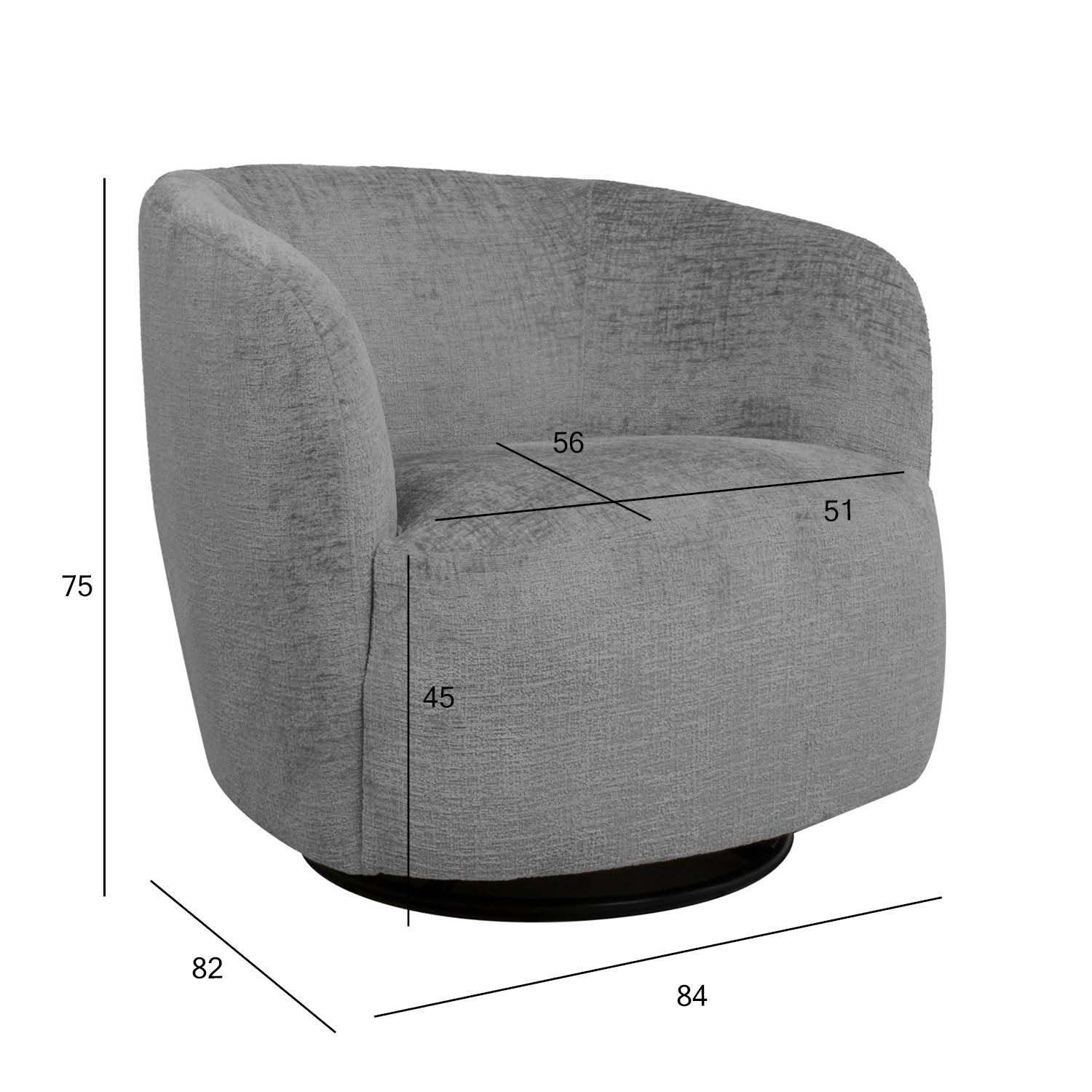Tugitool MANUELA tumehall. Ümara vormiga 360° pöörlev tugitool on mugav ja funktsionaalne ning sobitub suurepäraselt nii koju kui kontorisse. Istme karkass on valmistatud puidust ja vineerist. Istme sees on pocket vedruplokk. Polsterduseks on kasutatud polüuretaanvahtu ja polüesterkiudu. Kattematerjal on polüesterkangas, Martindale väärtus 41 000. Tooli üldmõõdud on 84x82xH75cm. Istme laius 51cm, istme sügavus 56cm, istme kõrgus 45cm.