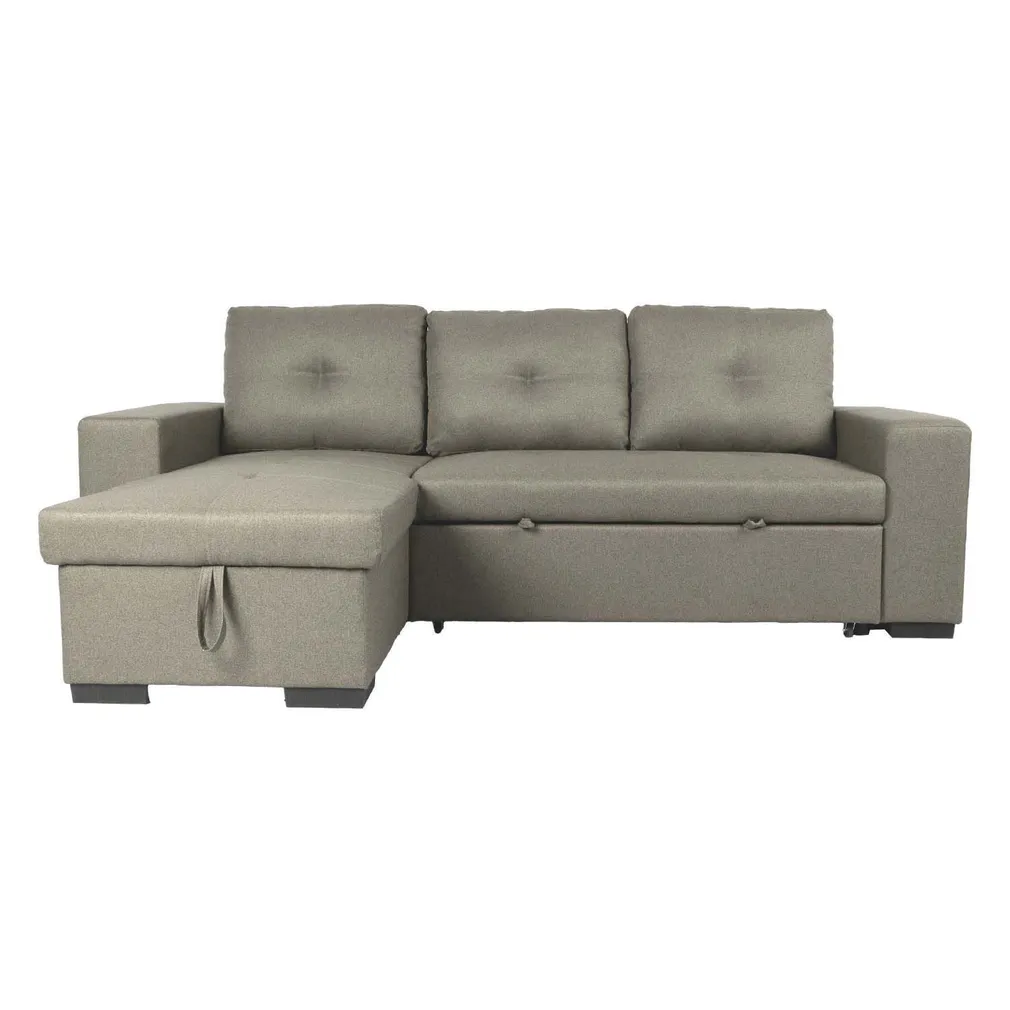 Nurgadiivanvoodi CARITA beež. Diivani karkass on valmistatud puidust ja vineerist. Istme sees on pocket-vedruplokk ja kvaliteetsest poroloonist (PU 25-28 kg/m³) polsterdus. Lahtised seljatoepadjad on täidetud polüesterkiuga. Diivan on kaetud polüesterkangaga. Diivani nurgaosa all on mahukas pesukast. Diivan on lahtikäiv ning vajadusel saab seda kasutada voodina. Avamiseks tõmmake istme alla paigutatud pikendusosa ette välja ja tõstke istmega samale tasapinnale. Diivanvoodi on mõeldud kasutamiseks pigem külalisvoodina, kui igapäevase magamisasemena. Kasutage alati kattemadratsit. Diivani nurk on universaalne ja selle saab tõsta vasakule või paremale. Diivani üldmõõdud on 240x90/160xH94cm. Istme sügavus 58/126cm, istme laius 195cm, istme kõrgus 45cm. Käetoe laius 23cm, käetoe kõrgus maast on 60cm. Magaimsosa mõõdud avatuna 130x195cm.