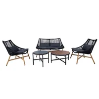 Aiamööblikomplekt HELSINKI diivan, 2 tooli ja 2 lauda. Komplekti kõigi osade jalad ja raamid on valmistatud alumiiniumist. Diivani ja toolide istmed on kaetud musta plastikpunutisega, jalad ja alusraam on käsitsi värvitud tiikpuud meenutava beeži värviga. Istmepadjad kuuluvad komplekti. Padjakatted on valmistatud tumehallist polüesterkangast. Laudade jalad ja alusraam on viimistletud tumehalli pulbervärviga. Suurem lauaplaat: tiikpuu dekooriga ilmastikukindel kõrgsurvelaminaat. Väiksema lauaplaat: hall karastatud klaas. Diivani mõõdud on 140x78xH83,5cm, tooli mõõdud on 71x78xH83,5cm, laudade mõõdud on D77xH35cm, D57xH43cm. Toode on muutlikes ilmastikutingimustes hästi vastupidav ja lihtsalt hooldatav. Kaitset ilmastikuolude eest vajavad ainult padjad. Välitingimustes kasutatava mööbli eluea pikendamiseks soovitame kasutada välimööbli katteid. HOIUSTAMINE: suvehooaja lõppedes soovitame aiamööblit hoiustada siseruumides. Puhastage ja kuivatage mööbel enne hoiule panekut. Kasutage hoiustamiseks kuiva ning hea ventilatsiooniga ruumi.