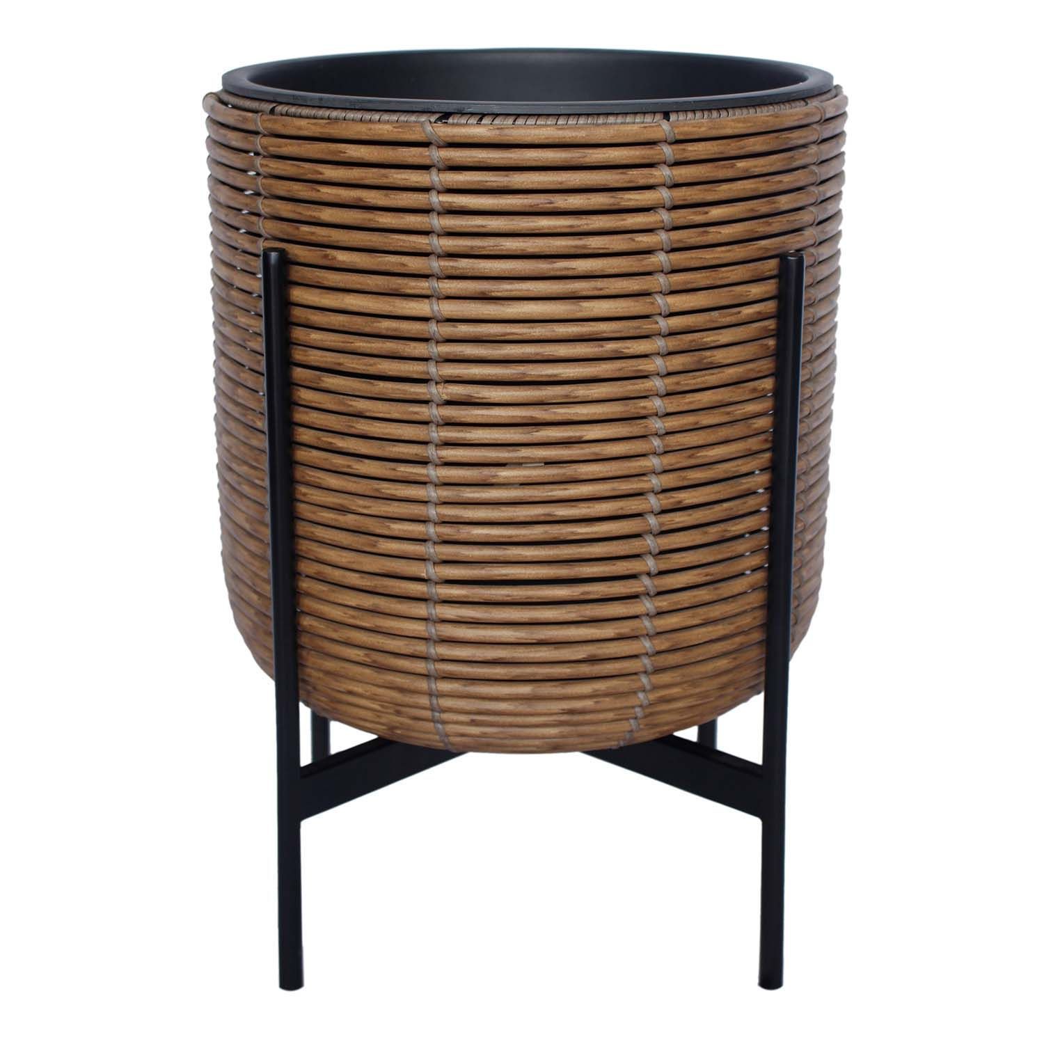 Lillepott WICKER alusega 38x38xH49cm, pruun. Lillepoti metallraam on kaetud plastikpunutisega. Lillepoti mõõdud on D36xH36cm. Plastikust sisepoti mõõdud on D30xH30cm. Sisepott on ilma auguta. Komplekti kuulub must metallist alusraam.