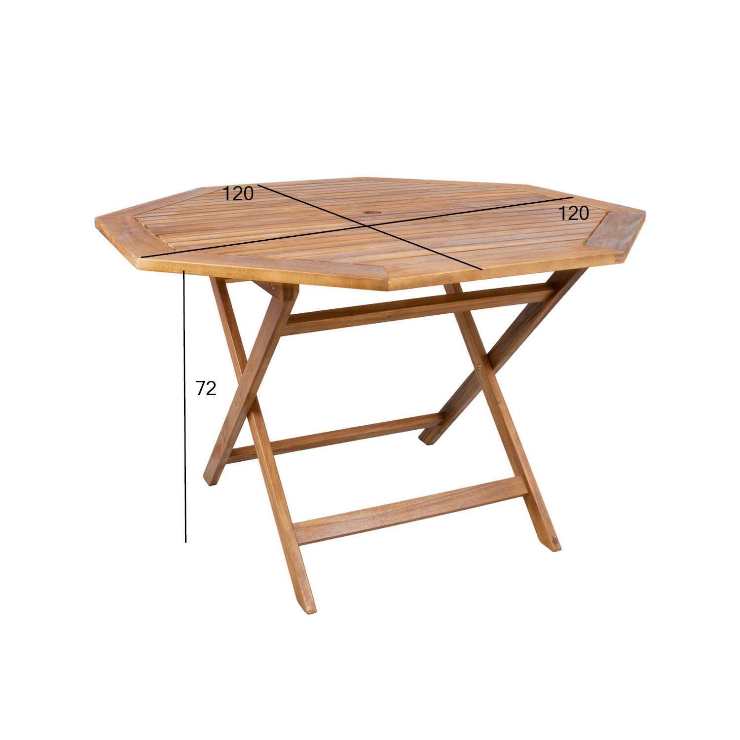 Laud FINLAY 120x120xH72cm, 8-nurkne. Laud on valmistatud akaatsia puidust ja viimistletud puidukaitseõliga. HOOLDUS: puit on elav looduslik materjal, mille välisilme ilmastikutingimuste tõttu muutub. Puhastage mööblit regulaarselt, kaitske liigniiskuse ja UV kiirguse eest. Kerge lihvimine ja uus õlikiht vähemalt korra aastas on piisav värskenduskuur mööblile uue näo andmiseks. HOIUSTAMINE: suvehooaja lõppedes soovitame aiamööblit hoiustada siseruumides. Puhastage ja kuivatage mööbel enne hoiule panekut. Kasutage hoiustamiseks jahedat, kuiva ning hea ventilatsiooniga ruumi.