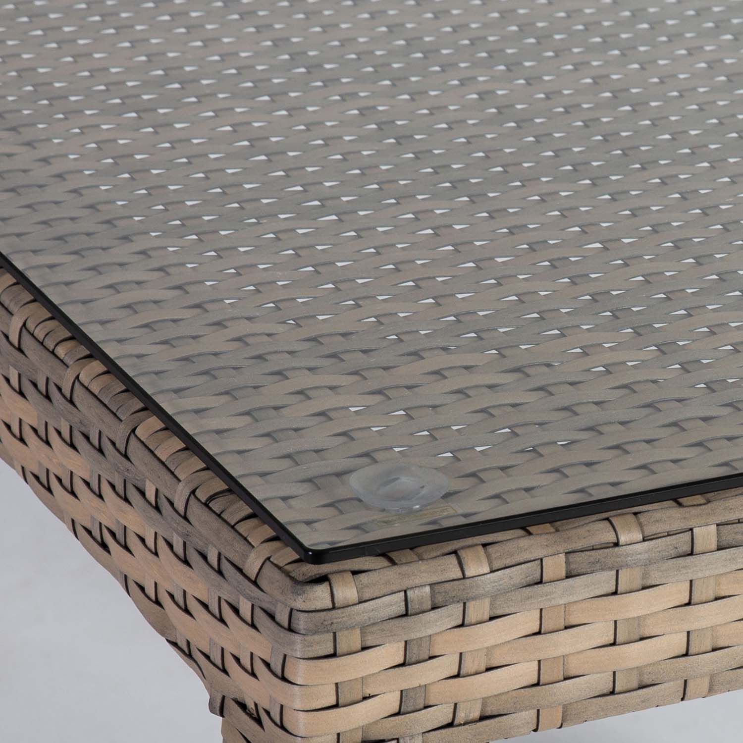 Laud LARACHE 80x80xH75cm, beež. Lauaplaat: 5mm läbipaistev karastatud klaas. Laua raam ja jalad on valmistatud alumiiniumist ja kaetud plastikpunutisega. Jalgade ja alusraami mõõdud 60x60mm. Toode on muutlikes ilmastikutingimustes vastupidav ja lihtsalt hooldatav. HOIUSTAMINE: suvehooaja lõppedes soovitame aiamööblit hoiustada siseruumides. Puhastage ja kuivatage mööbel enne hoiule panekut. Kasutage hoiustamiseks kuiva ning hea ventilatsiooniga ruumi.