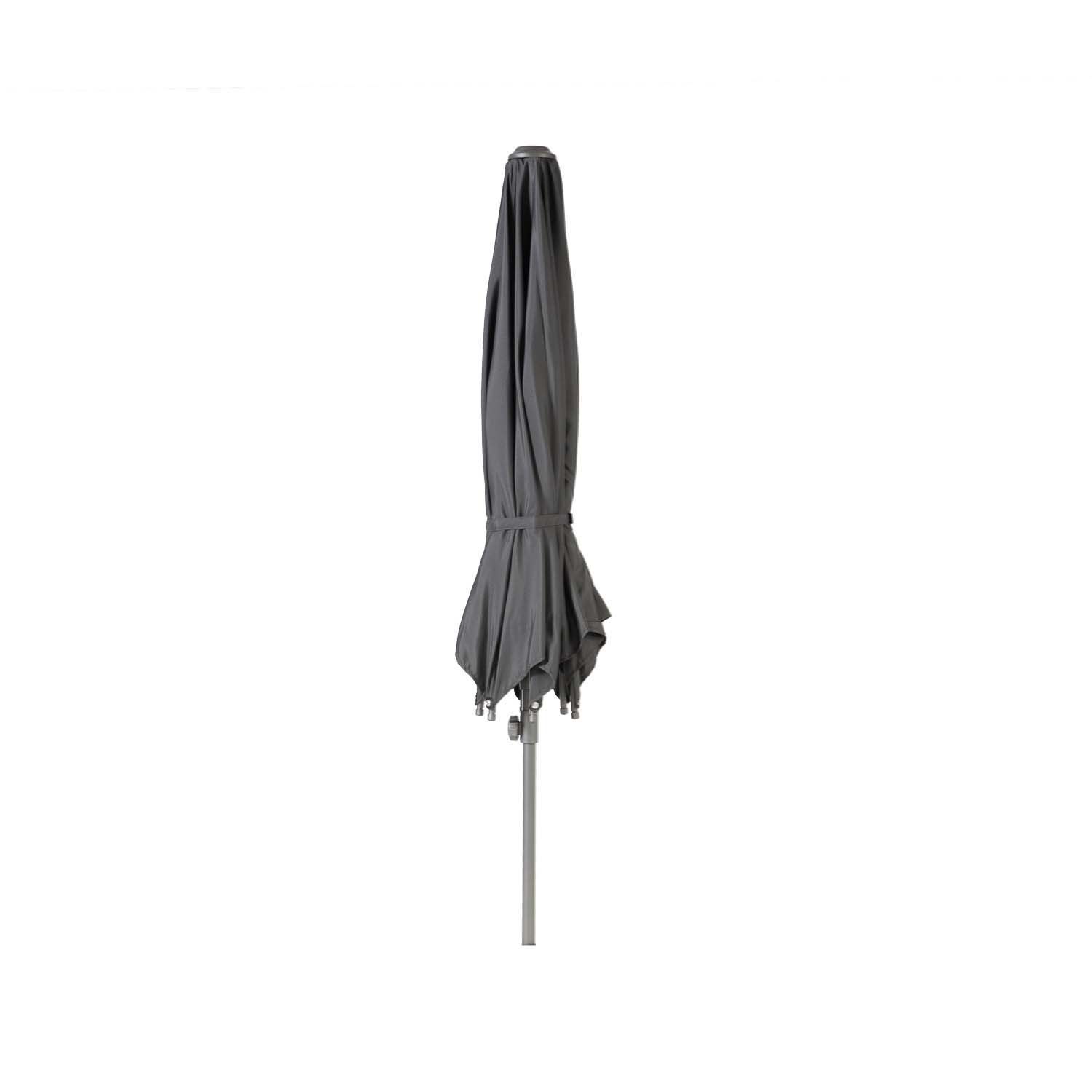 Päikesevari BALCONY D2,7m, tumehall. Päikesevarju kate on valmistatud tumehallist polüesterkangagast 180g/m². Varjul on 6 terasribi D19mm. Alumiiniumist jalg koosneb kahest torust D38/35mm. Jalg ja ribid on kaetud halli pulbervärviga. Varjul on avamiseks lihtne push-up mehhanism. Päikesevarjualus ei kuulu komplekti. HOIATUS: toode ei ole mõeldud kasutamiseks tugeva tuule või vihma korral. Ärge jätke avatud päikesevarju järelevalveta. HOOLDUS: hoiustage kuivas, hea ventilatsiooniga ruumis. Enne päikesevarju hoiule panemist laske sel täielikult kuivada.