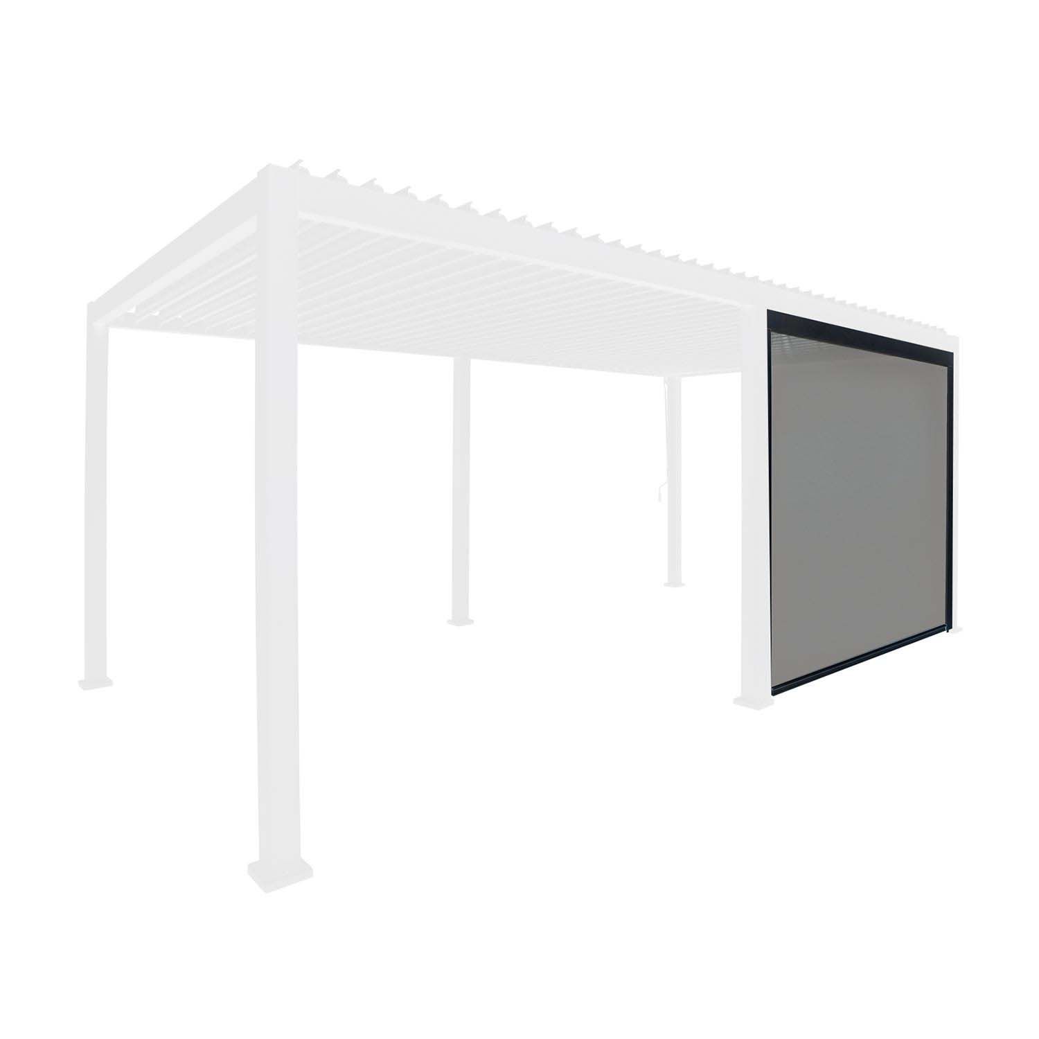 Ruloosein varikatuse MIRADOR-111 3m küljele, valge/helehall. Ruloosein on mugav ja elegantne lahendus, et muuta varikatus MIRADOR-111 kiiresti ilmastikuoludele vastavaks. Õhukesest textilene võrgust sein pakub nii varju, kui privaatsust ja kaitseb hästi sääskede eest. Seina on lihtne üles ja alla liigutada ja valida täpselt oludele vastav kõrgus. Rulooseinal on valge pulbervärvitud alumiiniumraam 2709,5x2365mm / 118x95x1,5mm, rulli mõõt on D60x1,5mm. Rulooseina võib paigutada varikatuse kõigile külgedele või kasutada kombineerituna lamellpaneelidega. Tutvuge ka teiste MIRADOR-111 varikatustele pakutavate kardinate ja küljeseinte valikuga! HOIATUS: tugeva tuule ja vihma korral lükake sein üles. Kuna ilmastikuolud võivad kiiresti muutuda soovitame rulooseina üles lükata alati, kui varikatust ei kasutata ja see on järelevalveta.