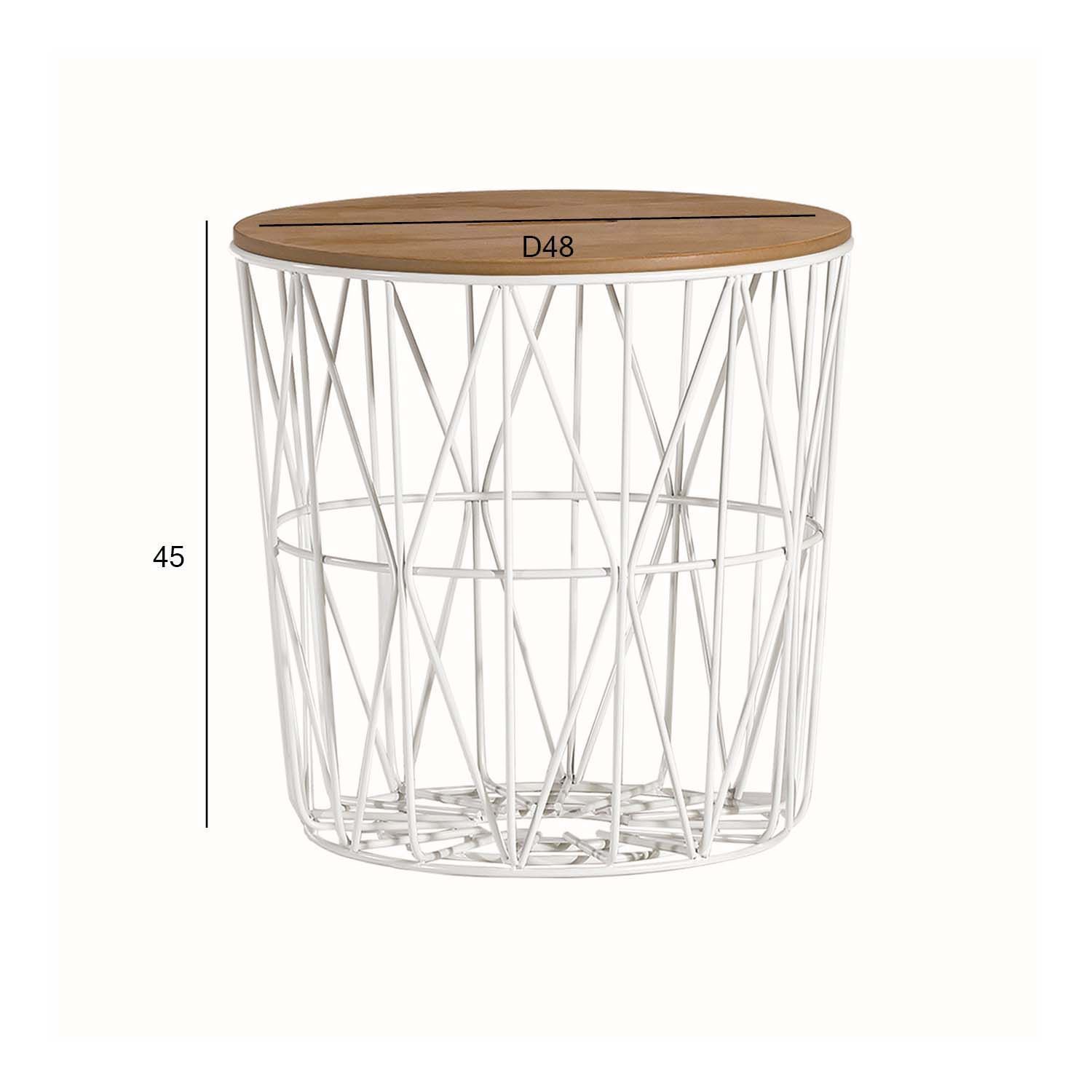 Diivanilaud HELENA D48xH45cm. Lauaplaat: 18mm MDF plaat naturaalse tammespooniga, lakitud. Metallist alusraam on värvitud valge pulbervärviga.