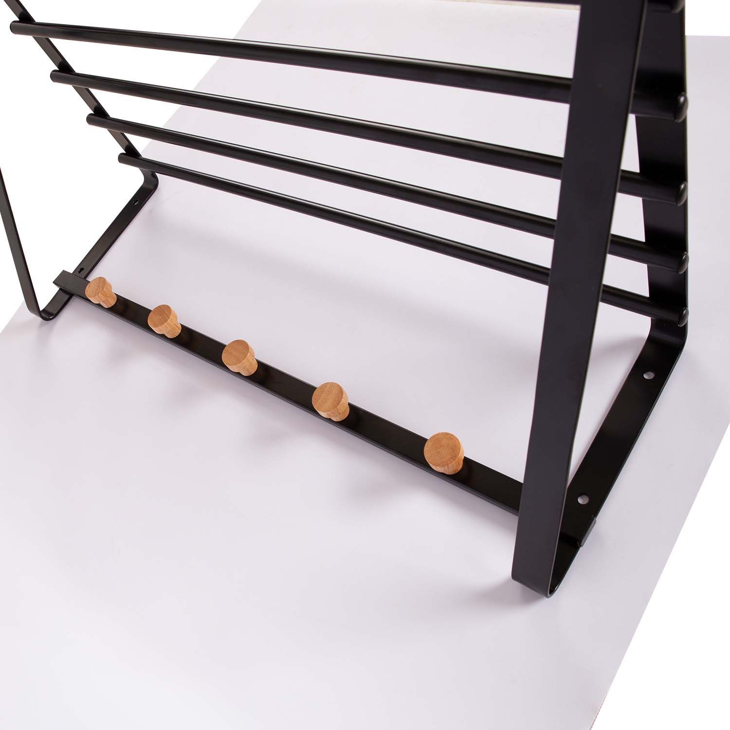 Seinanagi - riiul FOREST 60x33x20cm, must. Materjal: terastoru musta pulbervärvitud pinnaviimistlusega. 5 puidust riputuskonksu.