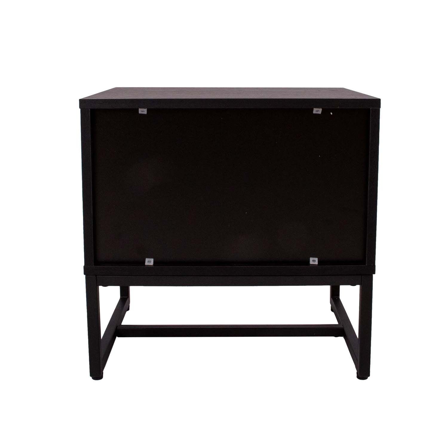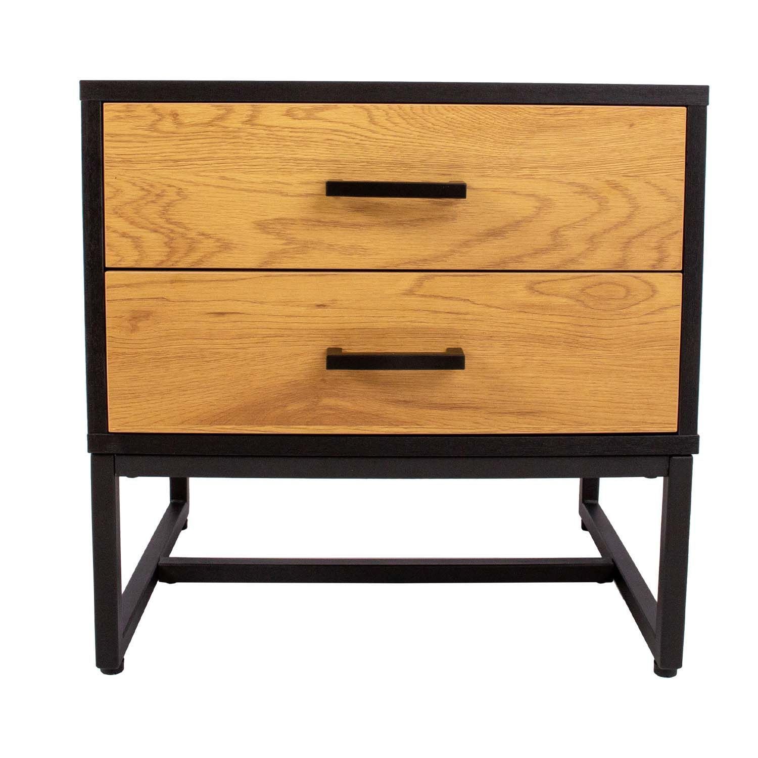 Öökapp AMSTERDAM 50x40xH50cm. Materjal: melamiinplaat, värvus: tamm/must. Must metallist alusraam. Vaikselt sulguvad sahtlisiinid. Mustad alumiiniumust käepidemed.
