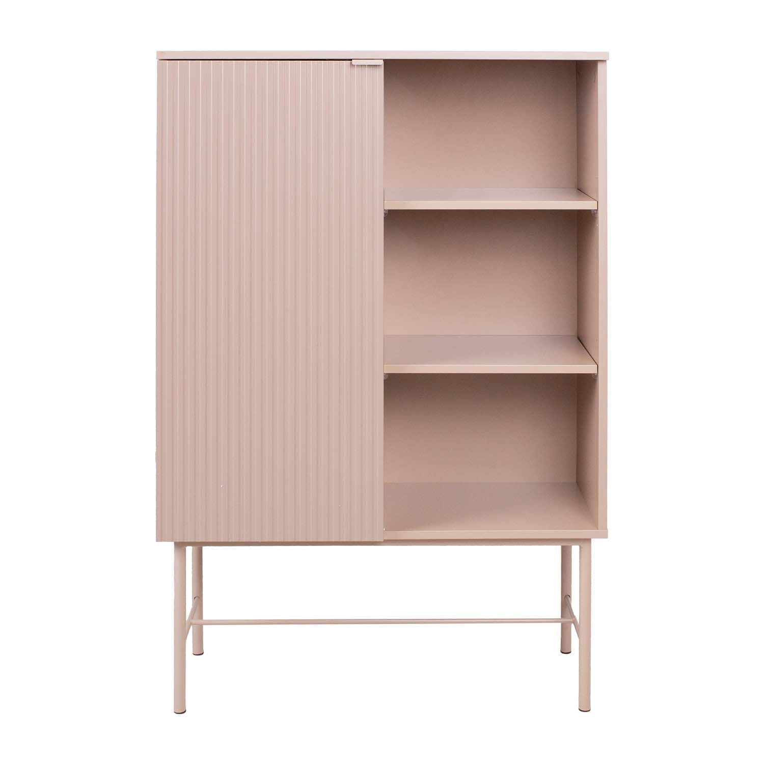 Kapp SEQUENCE 1-ukse ja avatud riiulitega 82x35xH130cm, cappuccino. Kapi korpus on valmistatud MDF plaadist. Reljeefse pinnaga triibuline uksepaneel annab tootele omanäolise ja trendika välimuse. Kapp on viimistletud vastupidava polüuretaanvärviga. Metallist alusraam ja jalad on viimistletud pulbervärviga.
