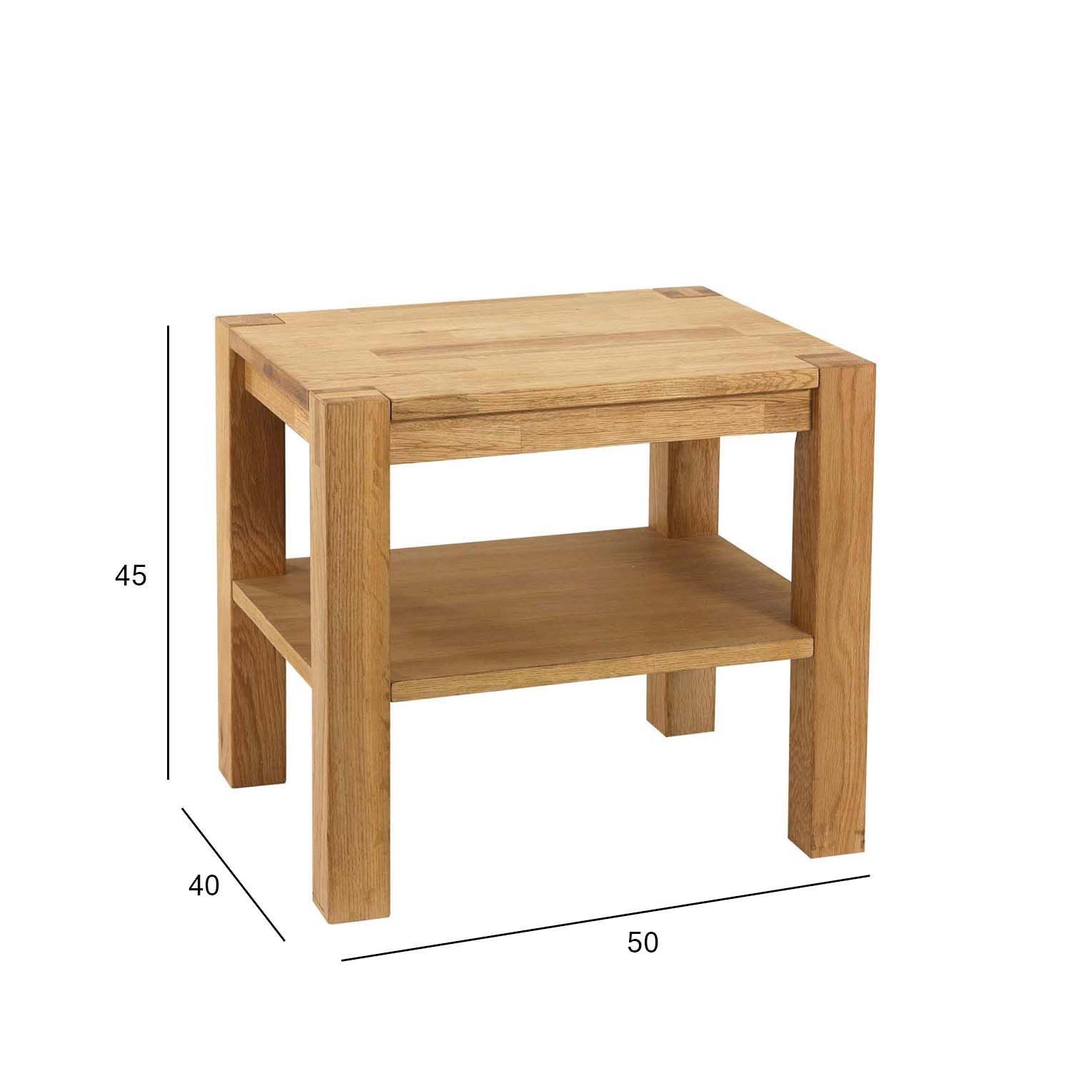 Öökapp/laud CHICAGO NEW, 50x40xH45cm. Pealmine lauaplaat: MDF kaetud naturaalse tammespooniga, alumine riiul: tamme vineerist.