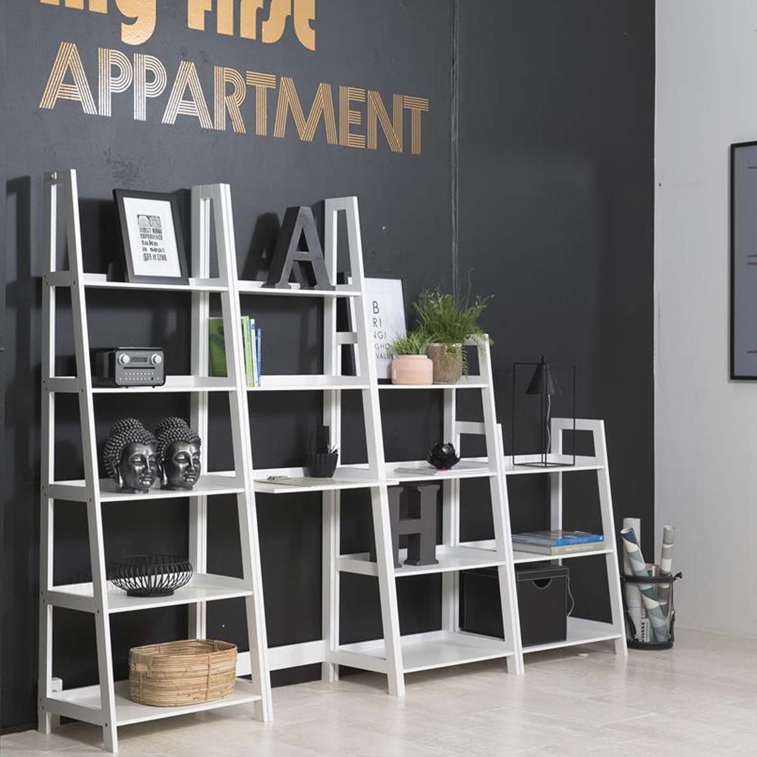 Riiul WALLY 63x40xH130cm, valge. Praktilist riiulit on võimalik kasutada erinevates ruumides asjade mugavaks hoiustamiseks. Riiulid ja raam on valget värvi, viimistlus lakitud. Toote mõõdud on 63x40xH130cm.