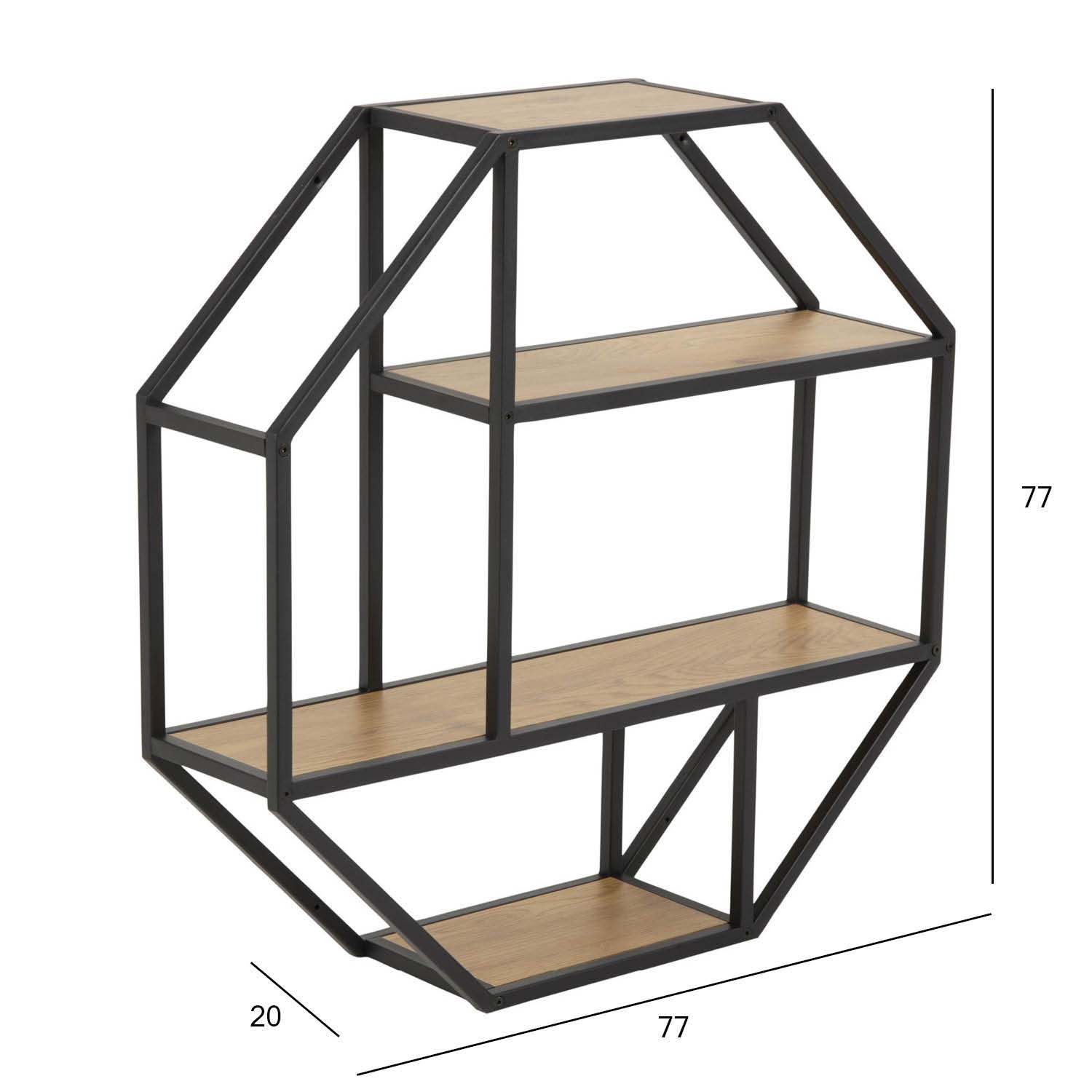 Kujunda ainulaadne seinapind, kus eksponeerida oma lemmikesemeid ja muuta ruum isikupärasemaks. Kaheksanurkne riiul lisab ruumile stiili ja sulandub paljudesse interjööridesse. Tamme välimusega riiulid, pulbervärvitud viimistlusega metallalus. HOOLDUS: Melamiinpinnad vajavad minimaalset hooldust. Kasutage seebivees tugevasti väänatud lappi ja pühkige pind kindlasti kuivaks. Vältige küürimispulbri või nailonkäsnade kasutamist, kuna need pleegitavad või kriimustavad laminaati. Rooste vältimiseks pühkige pind lapiga kuivaks. Ärge hõõruge pinda kõvade esemetega.