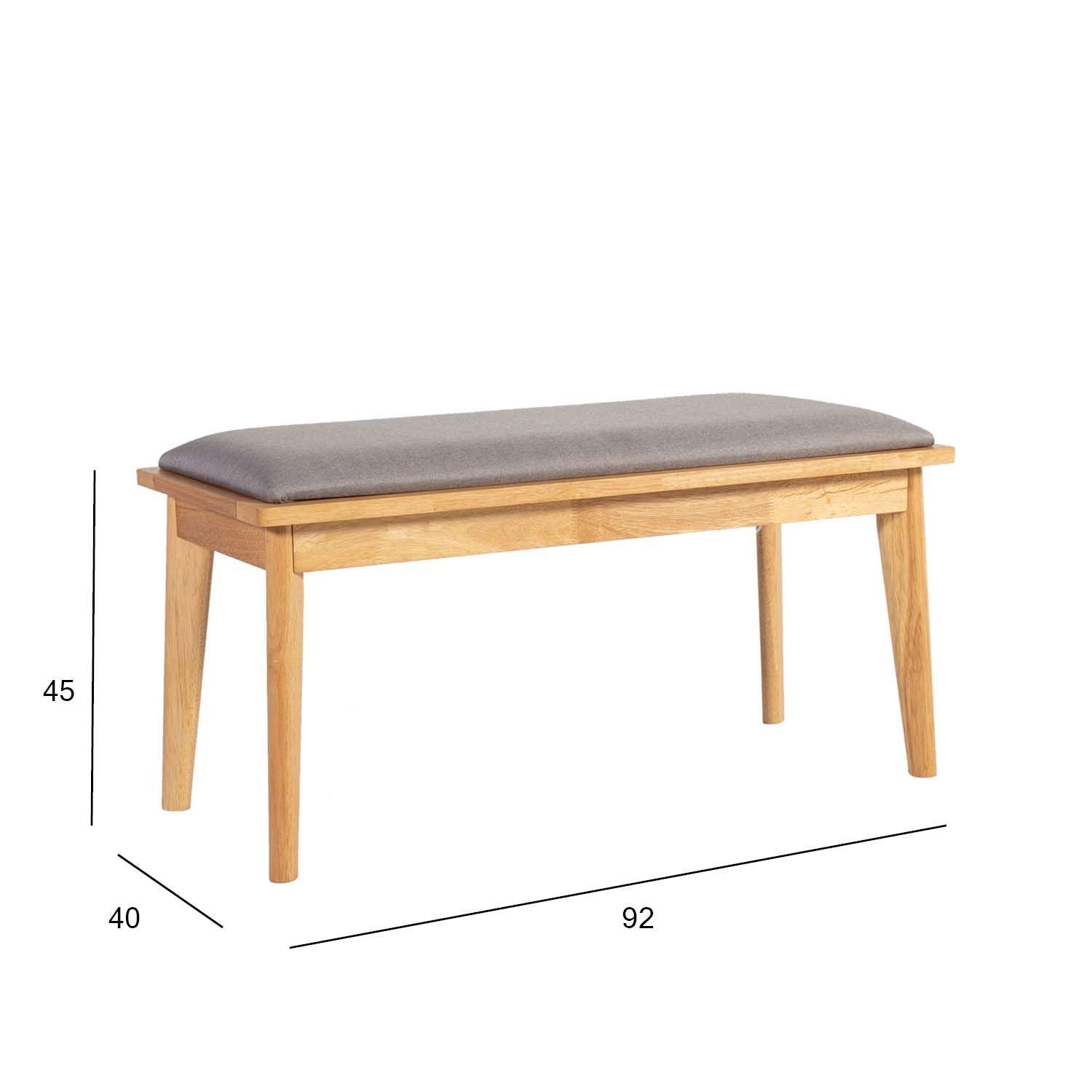 Pink JONNA 92x40xH45cm. Pingi kergelt polsterdatud iste on kaetud halli polüesterkangaga. Pingi jalad ja raam on valmistatud kummipuust ja viimistletud tamme toonis lakiga.