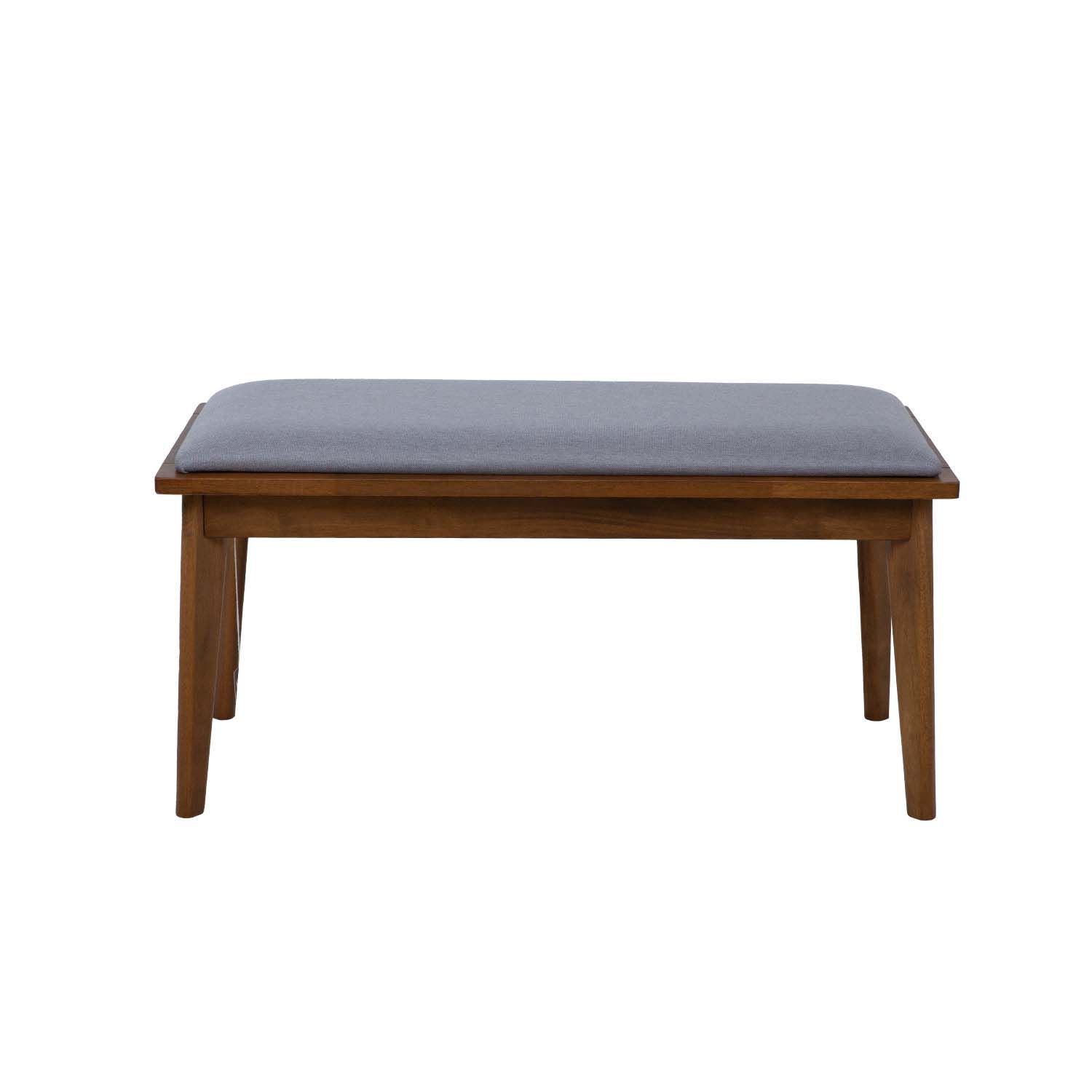 Pink JESPER 92x40xH45cm. Pingi kergelt polsterdatud iste on kaetud halli polüesterkangaga. Pingi jalad ja raam on valmistatud kummipuust ja viimistletud pähkli toonis lakiga.