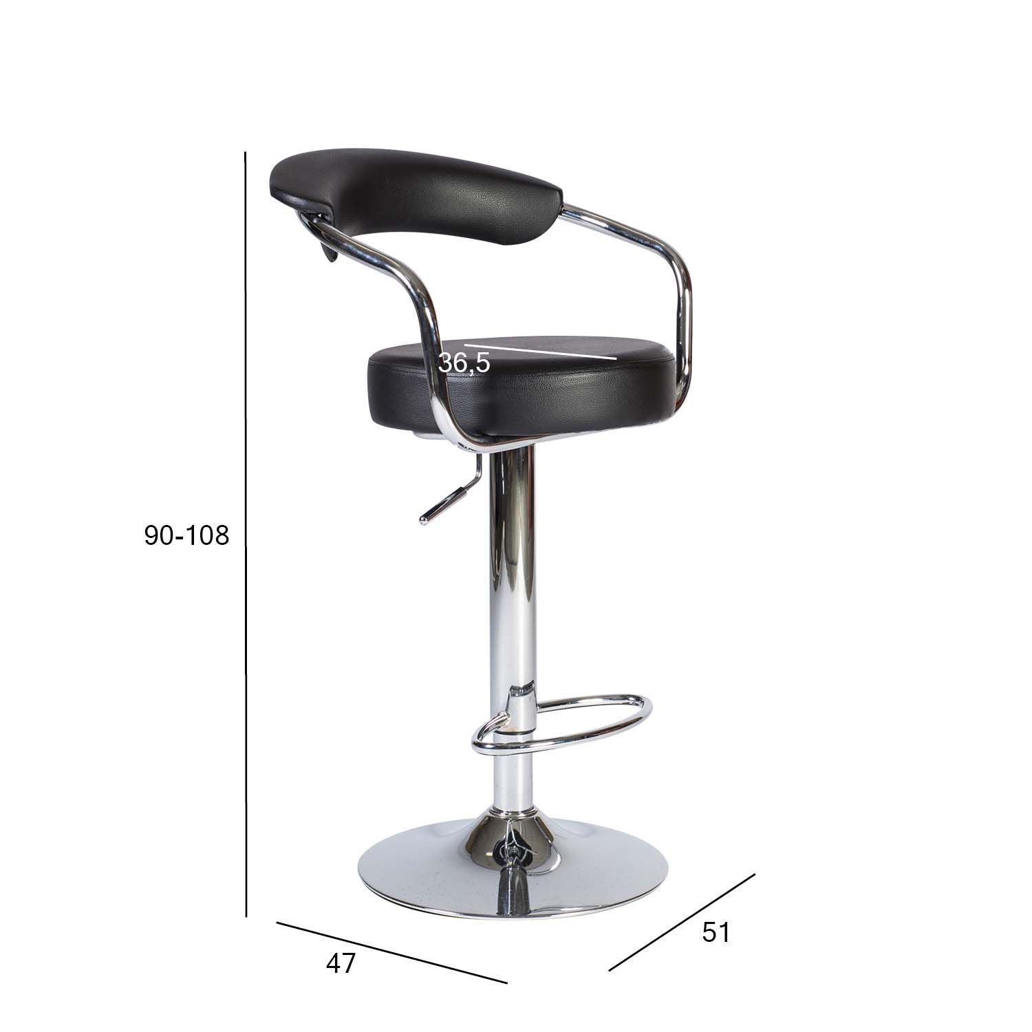 Baaripukk LEON must. Baaripuki iste ja seljatugi on kaetud musta kunstnahaga. Terasest jalg on kroomitud viimistlusega. Kõrgus on reguleeritav gaaasamordi abil. Baaripuki üldmõõdud on 51x47xH90-108cm. Istme läbimõõt 36,5cm, istme kõrgus 67-85cm. Kaalupiirang 120kg.