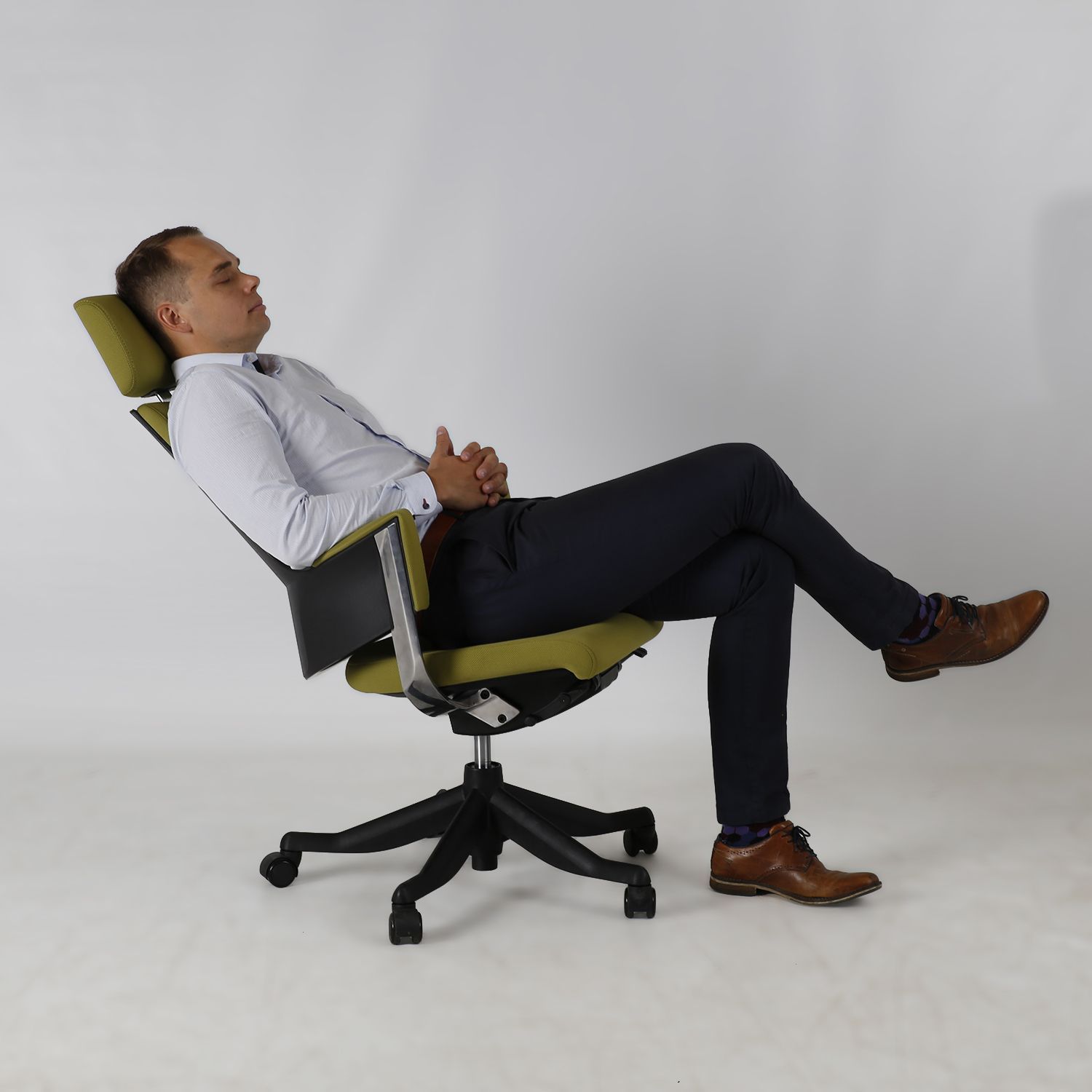 Töötool DELPHI oliiviroheline. DELPHI tool on soliidne ja väärikas, tegemata järeleandmisi mugavuse ja ergonoomika arvelt. Tooli seljatugi ja käetoed moodustavad kompaktse, head tuge pakkuva terviku. Seljatoe väliskorpus on vormitud mustast plastikust (100% PP taaskasutatav), mida täiendavad efektsed survevalualumiiniumist poleeritud viimistlusega detailid tooli külgedel. Iste ja seljatugi on polsterdatud ja kaetud vastupidava polüesterkangaga, Martindale’i väärtus 50 000. Toolil on sünkroonmehhanism. Seljatoe kaldenurk on lukustatav vabalt valitud positsioonis. Tooli kaldepinge tugevus reguleeritav. Istme kõrgus on reguleeritav gaasamordi abil. Peatoe kõrgus on reguleeritav. Tooli 5-haruline jalarist on valmistatud mustast plastikust. Toolil on põrandat säästvad piduritega nailonrattad. Tooli üldmõõdud on 70x70xH117,5-133,5cm. Istme laius 47cm, istme sügavus 47cm, istme kõrgus 41,5-53cm. Kaalupiirang 120kg.