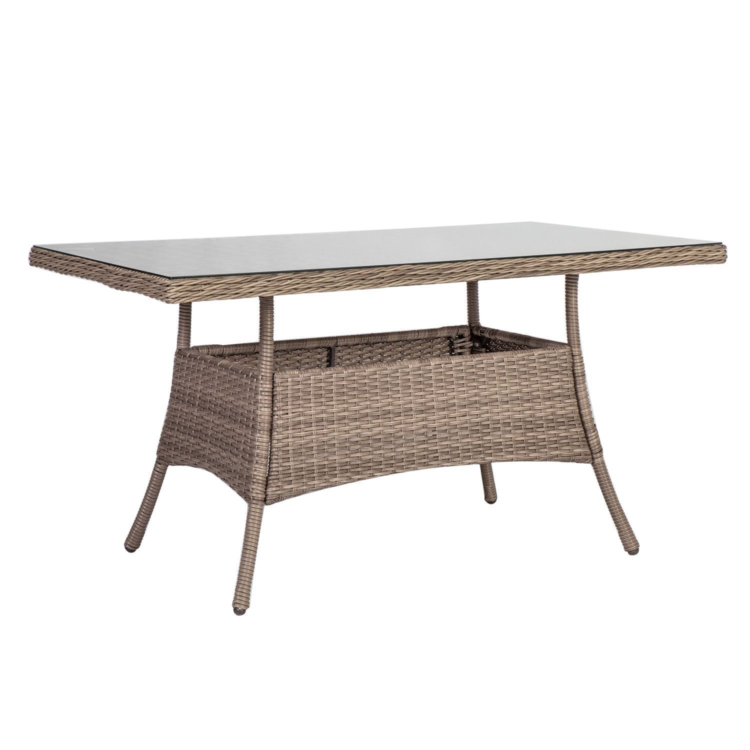 Laud TOSCANA 140x80xH73cm, bee˛. Lauaplaat: 5mm läbipaistev karastatud klaas. Laua pulbervärvitud alumiiniumraam on kaetud plastikpunutisega. Toode on muutlikes ilmastikutingimustes hästi vastupidav ja ei nõua erilist hooldust. Välitingimustes kasutatava mööbli eluea pikendamiseks soovitame kasutada välimööbli katteid. HOIUSTAMINE: suvehooaja lõppedes soovitame aiamööblit hoiustada siseruumides. Puhastage ja kuivatage mööbel enne hoiule panekut. Kasutage hoiustamiseks kuiva ning hea ventilatsiooniga ruumi.