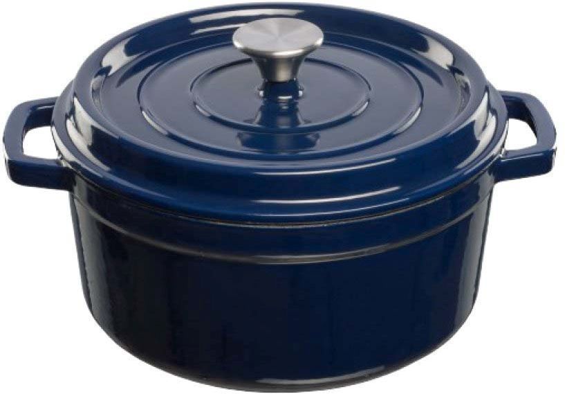 Grand Feu emailitud kaanega tumesinine malmpott, 3,5 L. Stiilne, minimalistliku disainiga malmpott on pikaajaline ja vastupidav. Selles potis saad valmistada kõige maitsvamaid pudrusid, suppe, kastmeid ja hautisi. Ideaalne saia või piruka valmistamiseks. Potil on laiad käepidemed, mille tõttu on seda lihtne kinnastega tõsta. Ahjupott kuumeneb aeglaselt, ühtlaselt ja hoiab stabiilselt kuumust. Stiilne disain sobib igasse kööki ning potil on kaunis pakend, mida on hea kinkida. Potis saab valmistada toitu kuni 4-le inimesele. Pott sobib igat tüüpi ahjudesse, pliitidele ja Kamado tüüpi grillidele. Sobib kasutamiseks väga kõrgel temperatuuril kuni 300°C. Kuumuta emailiga kaetud potti aeglaselt, ära kuumuta tühjana. Hooldus: Käsitsi pestav. Kuivata. Ei ole nõudepesumasinas pestav. Ärge kasutage poti puhastamiseks abrasiivsete osakestega tooteid.